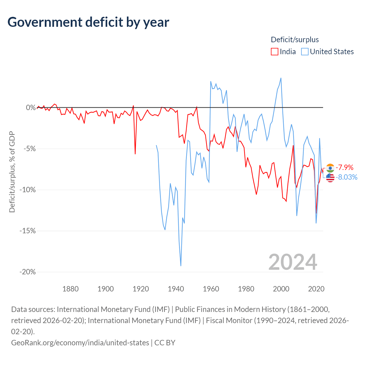 - International Monetary Fund (IMF) | Public Finances in Modern History (1861–2000, retrieved 2026-02-20)