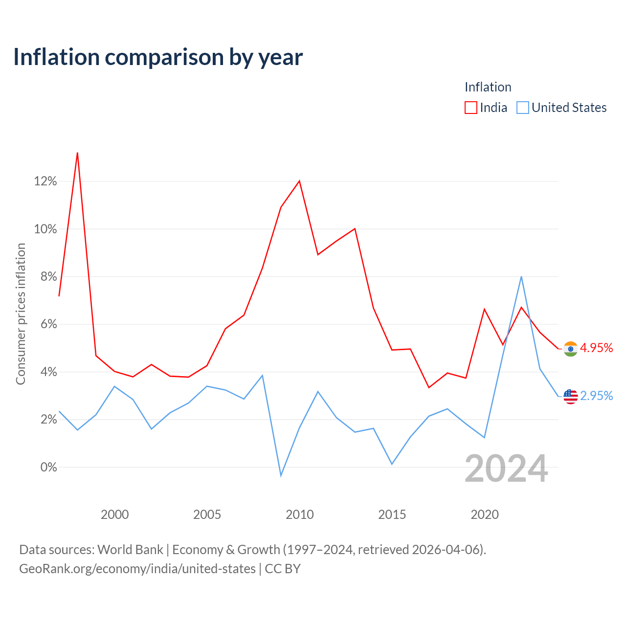 Data sources: World Bank | Economy & Growth (1960–2024, retrieved 2026-04-06).