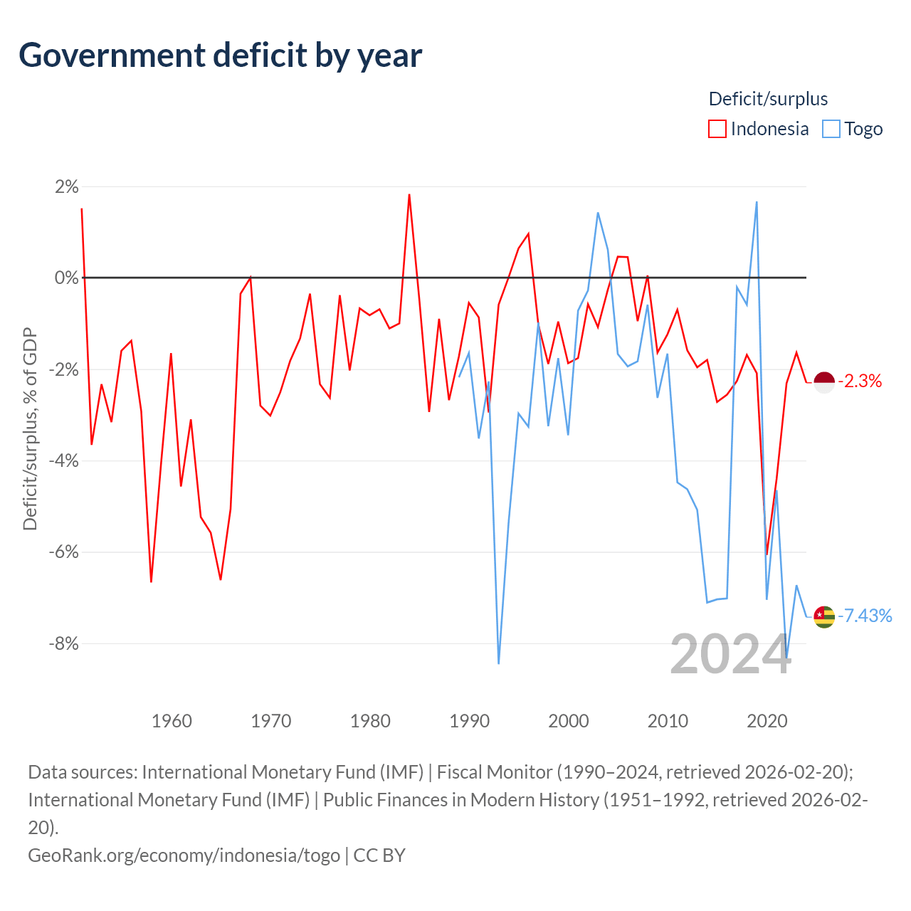 - International Monetary Fund (IMF) | Public Finances in Modern History (1951–2004, retrieved 2026-02-20)