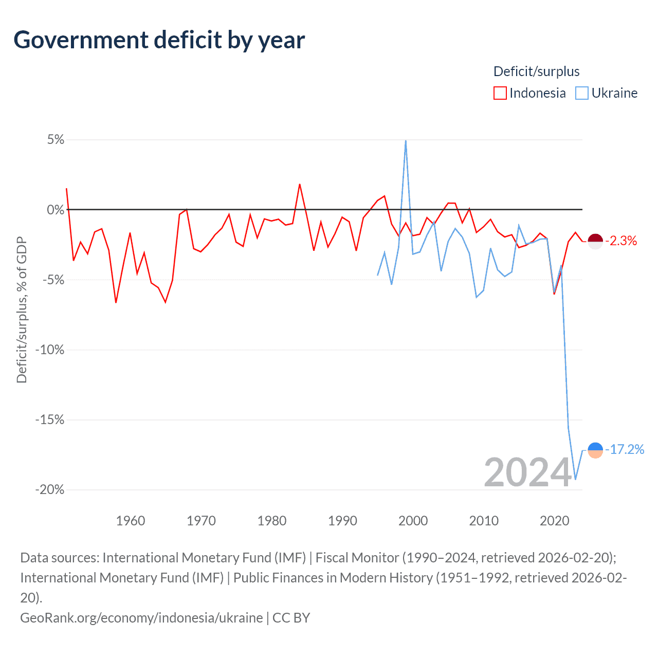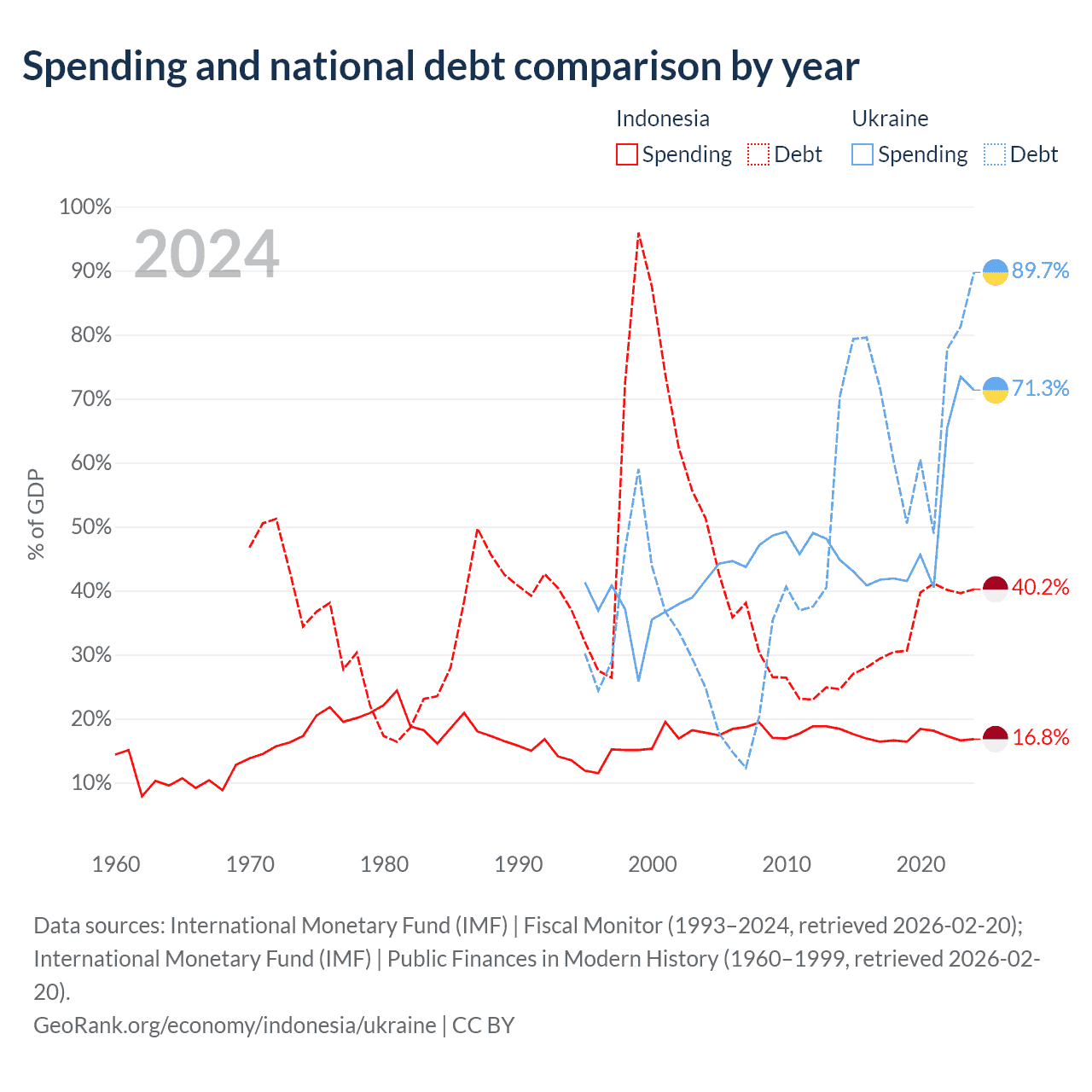 Indonesia has $561B in government debt (40.2% of GDP), compared to $171B (89.7% of GDP) in Ukraine.