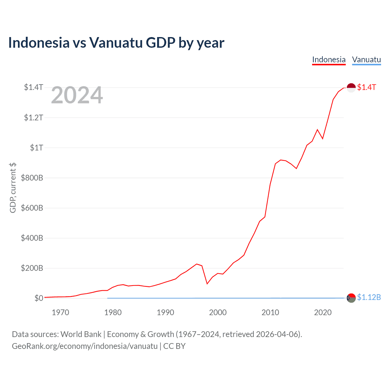 Indonesia vs Vanuatu GDP by year