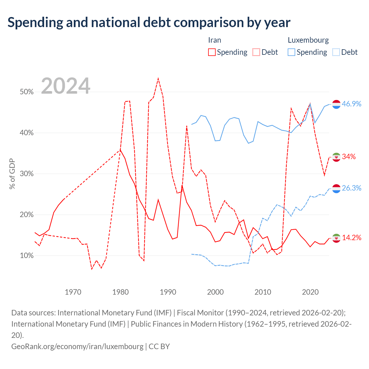 Iran has $162B in government debt (34% of GDP), compared to $24.5B (26.3% of GDP) in Luxembourg.