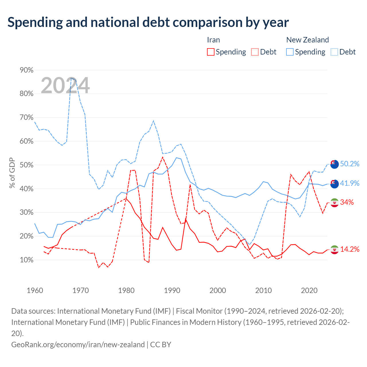 Iran has $162B in government debt (34% of GDP), compared to $131B (50.2% of GDP) in New Zealand.