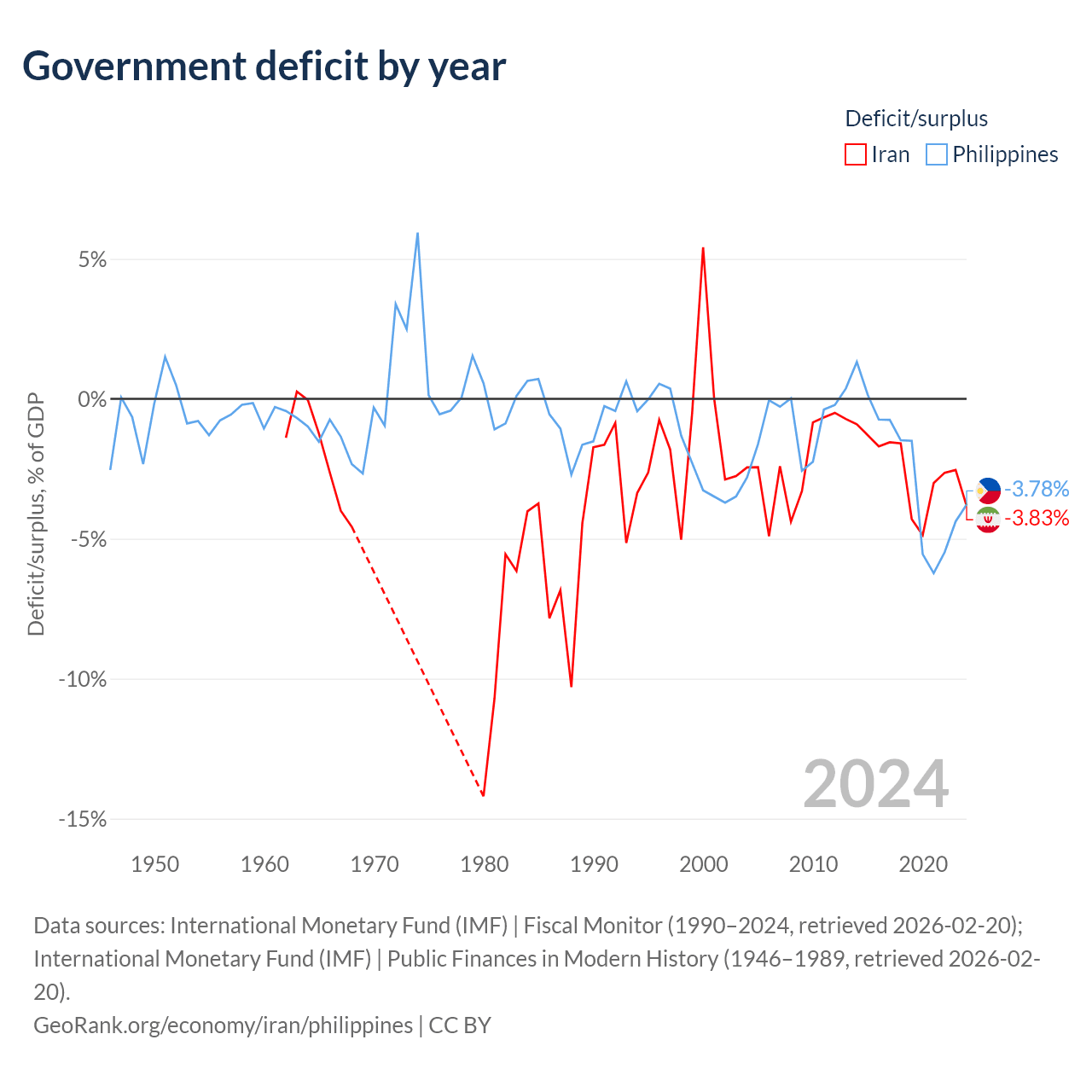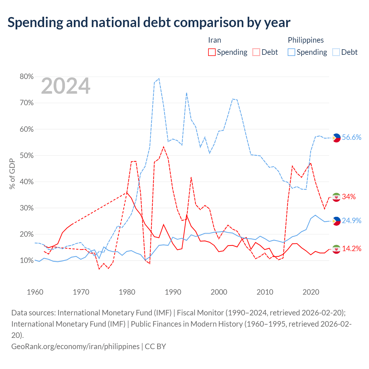 Iran has $162B in government debt (34% of GDP), compared to $261B (56.6% of GDP) in the Philippines.