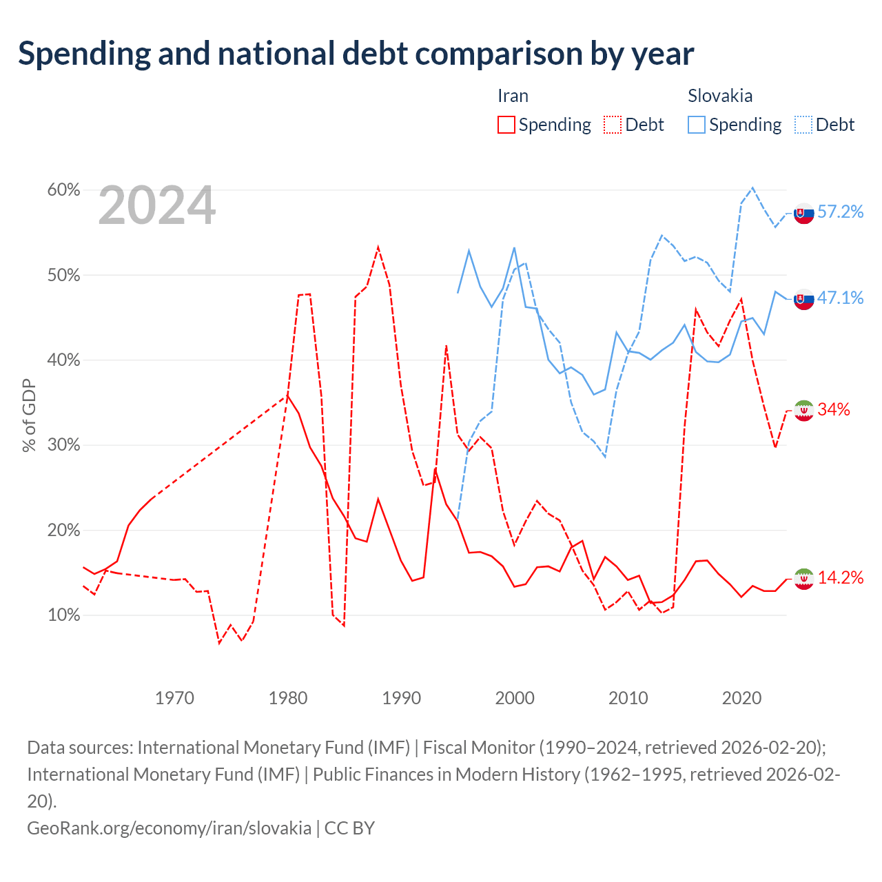 Iran has $162B in government debt (34% of GDP), compared to $80.7B (57.2% of GDP) in Slovakia.