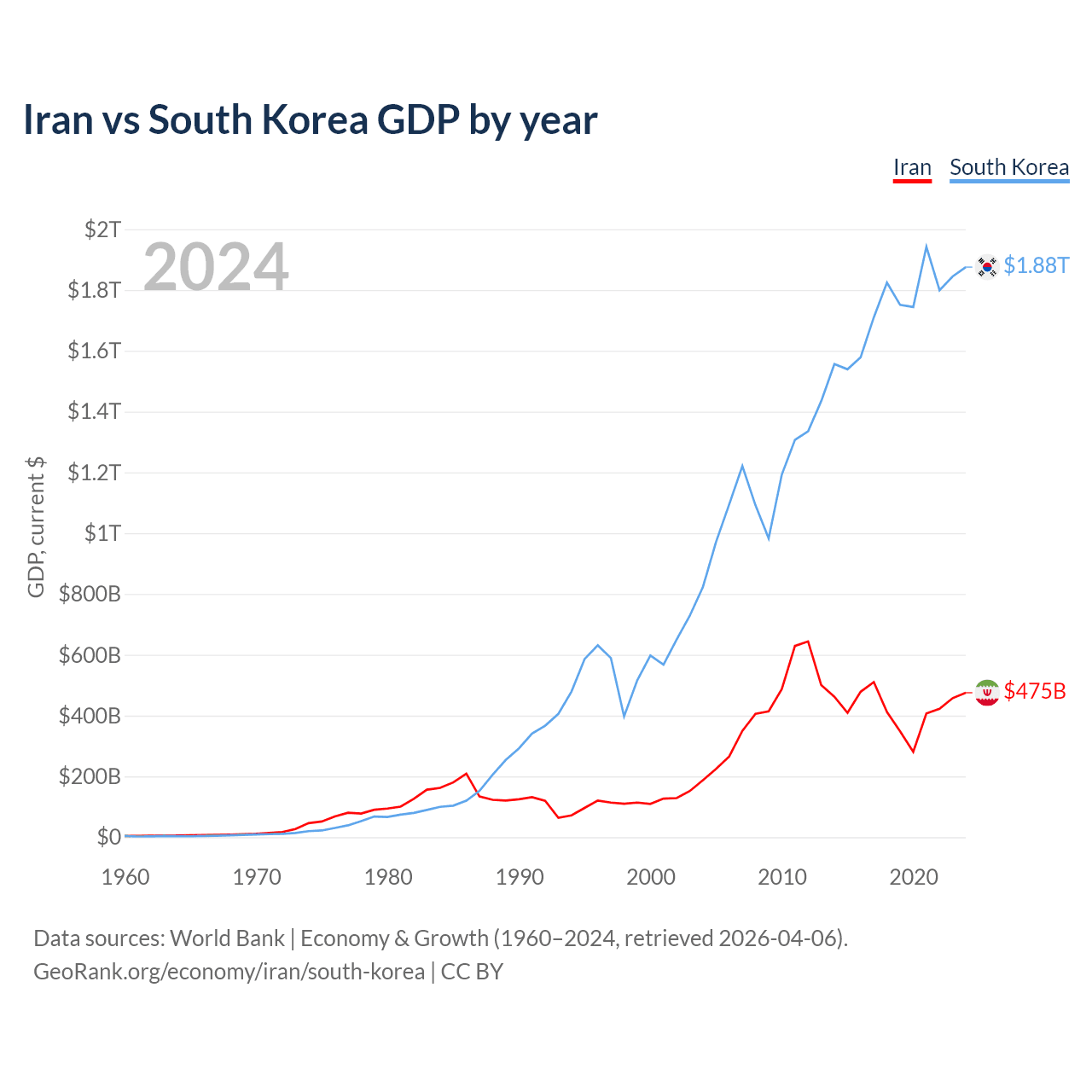 Iran vs South Korea GDP by year