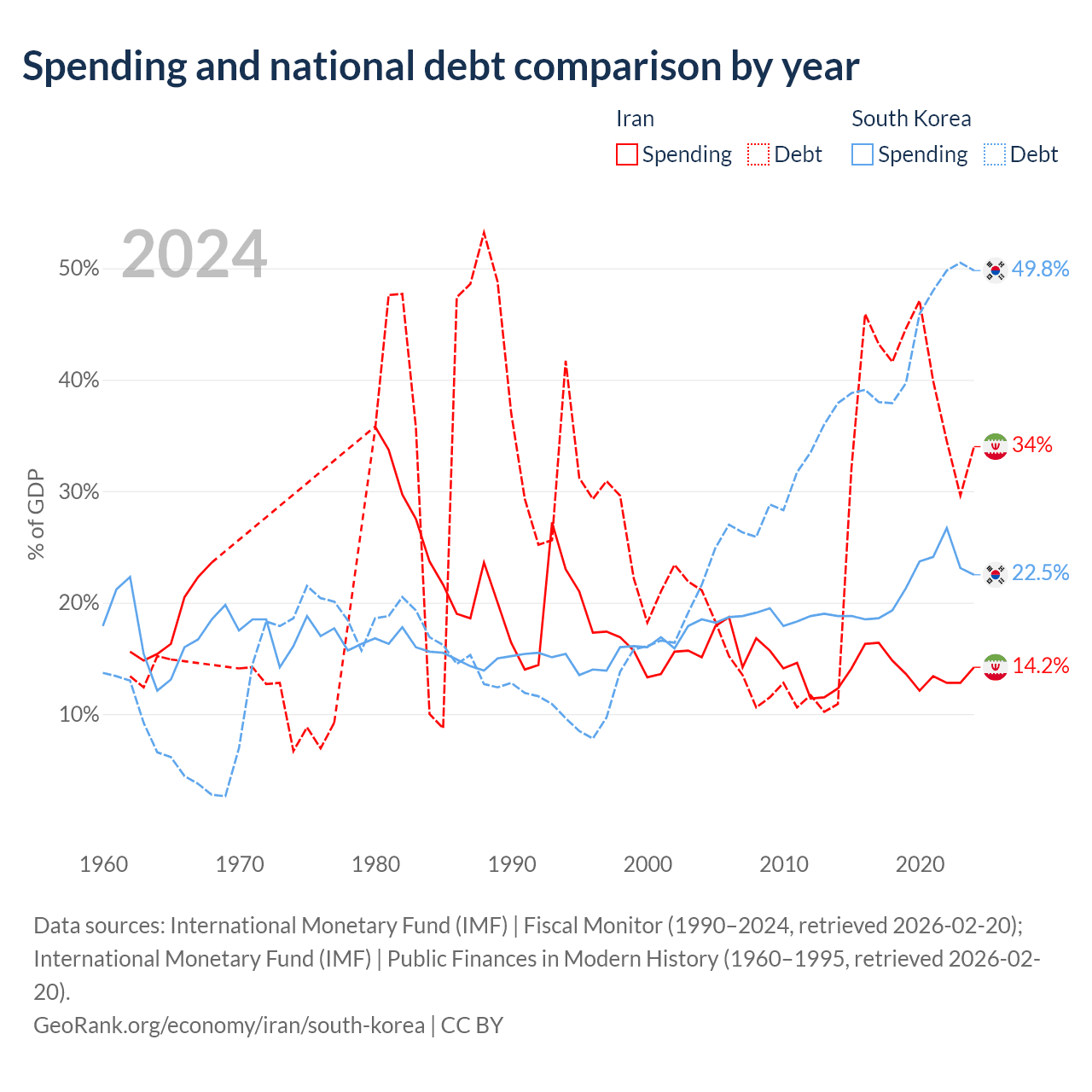 Iran has $162B in government debt (34% of GDP), compared to $934B (49.8% of GDP) in South Korea.