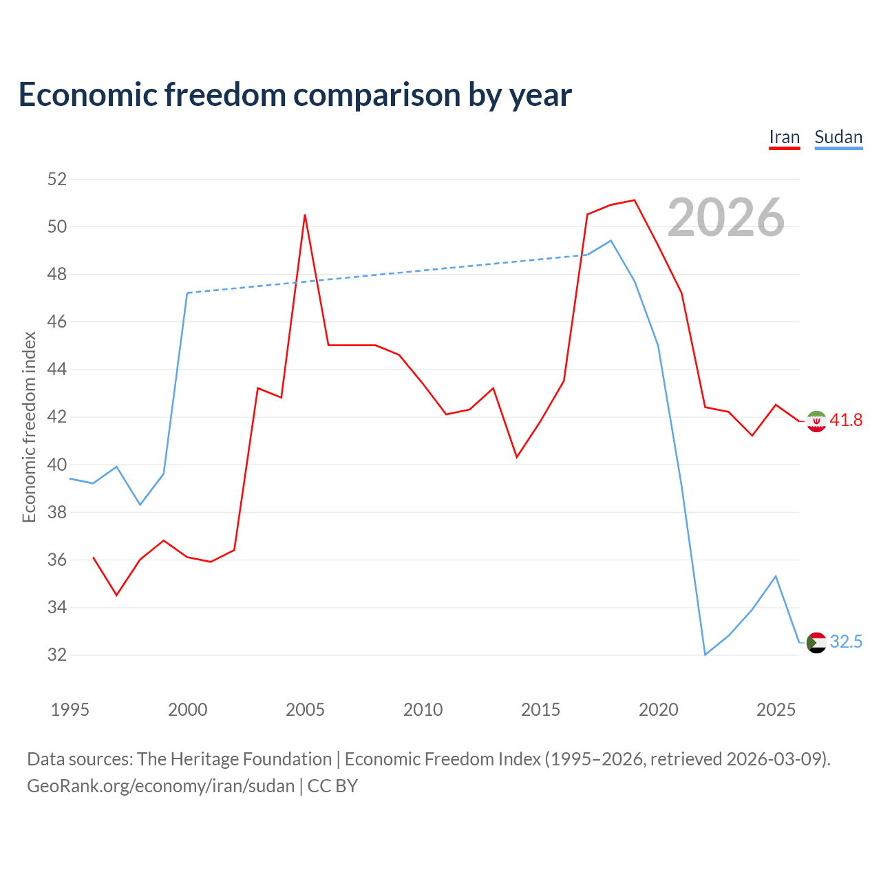 Data sources: The Heritage Foundation | Economic Freedom Index (1995–2026, retrieved 2026-03-09).
