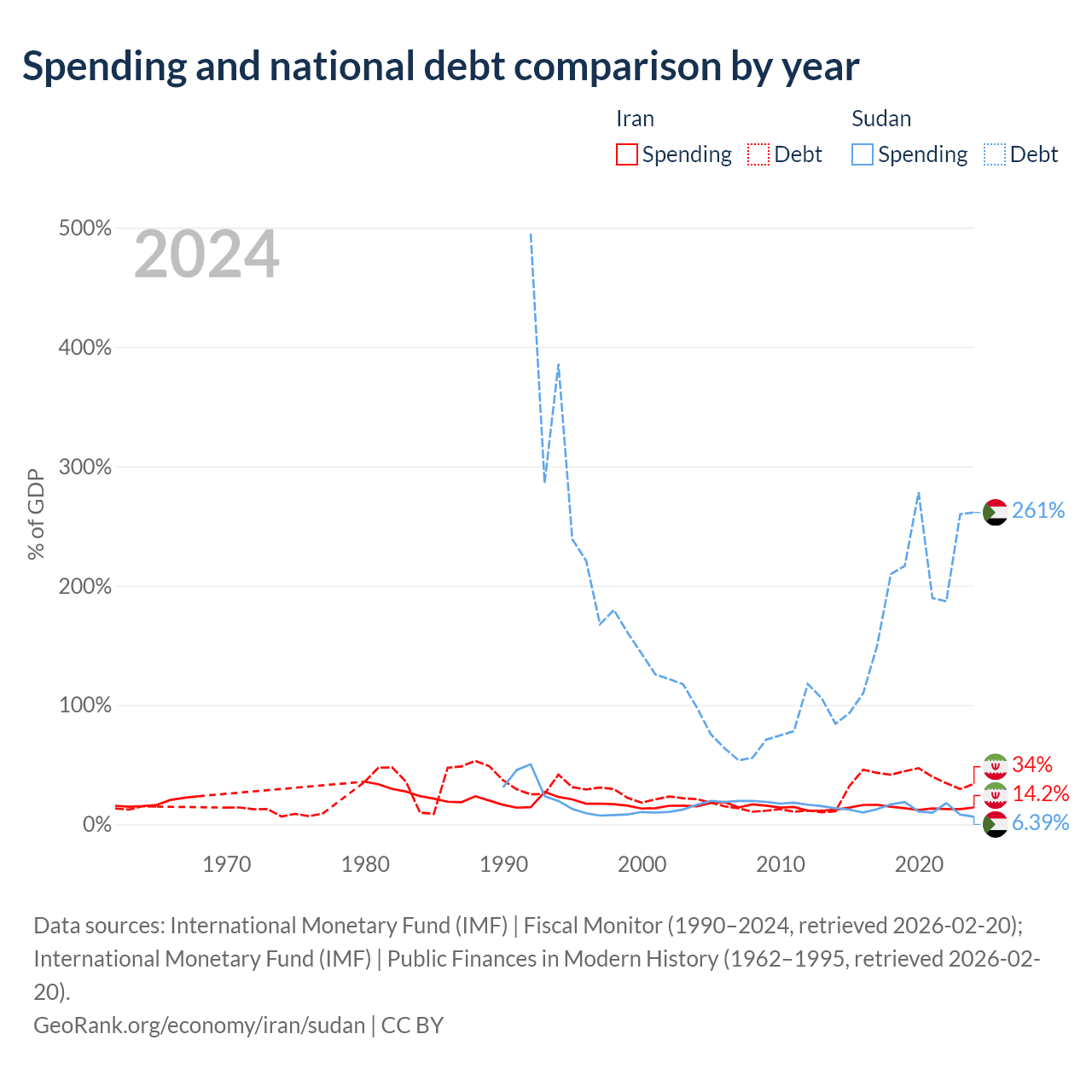Iran has $162B in government debt (34% of GDP), compared to $130B (261.4% of GDP) in Sudan.