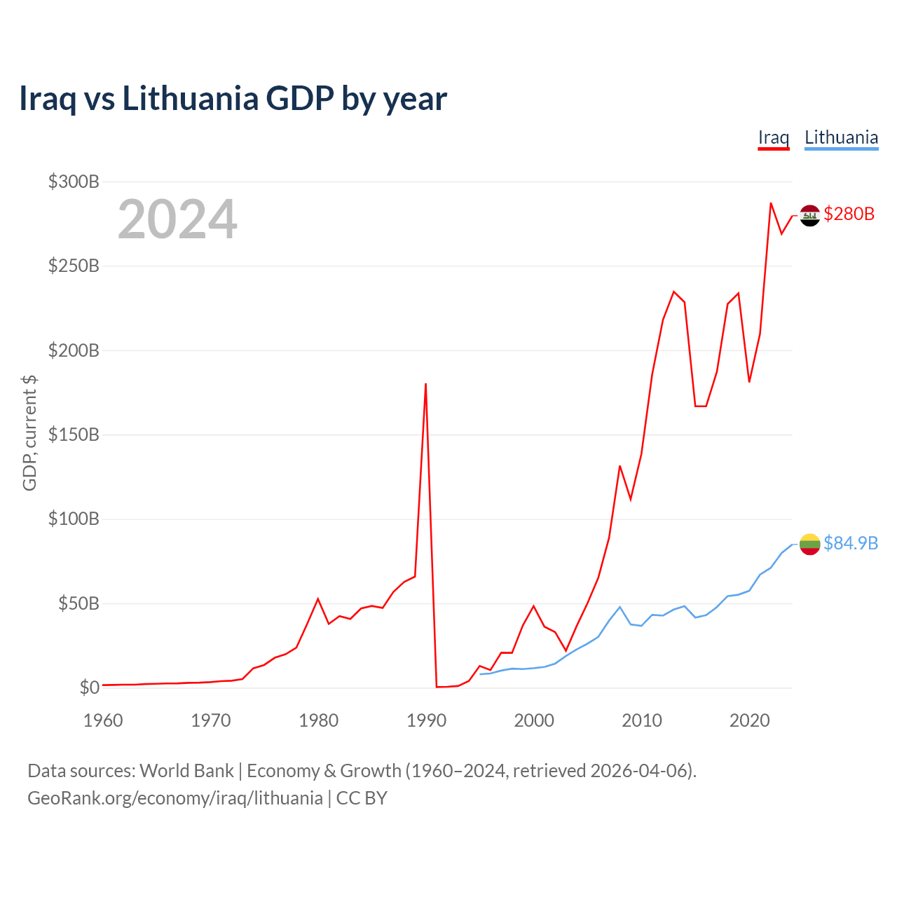 Iraq vs Lithuania GDP by year