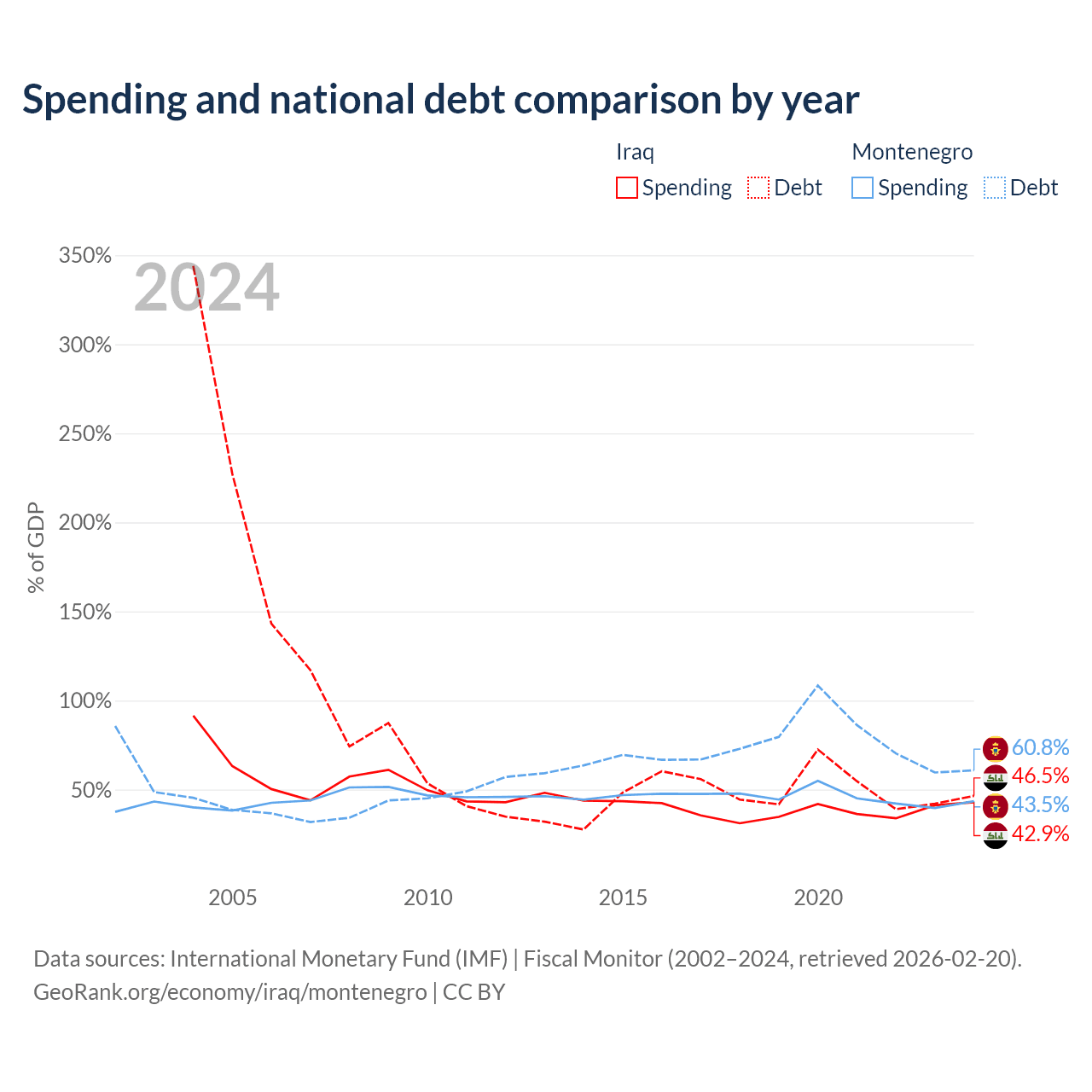 Iraq has $130B in government debt (46.5% of GDP), compared to $5.02B (60.8% of GDP) in Montenegro.