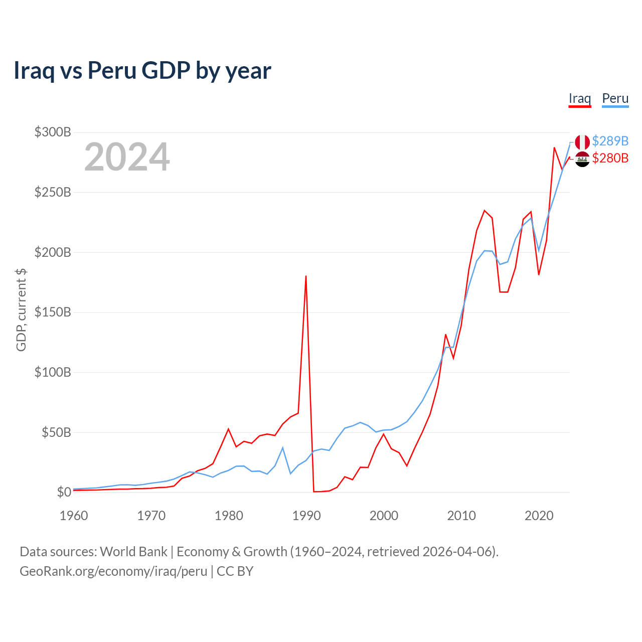 Iraq vs Peru GDP by year