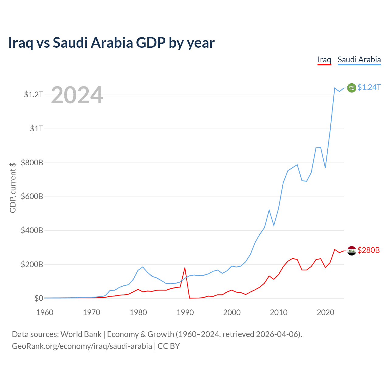 Iraq vs Saudi Arabia GDP by year