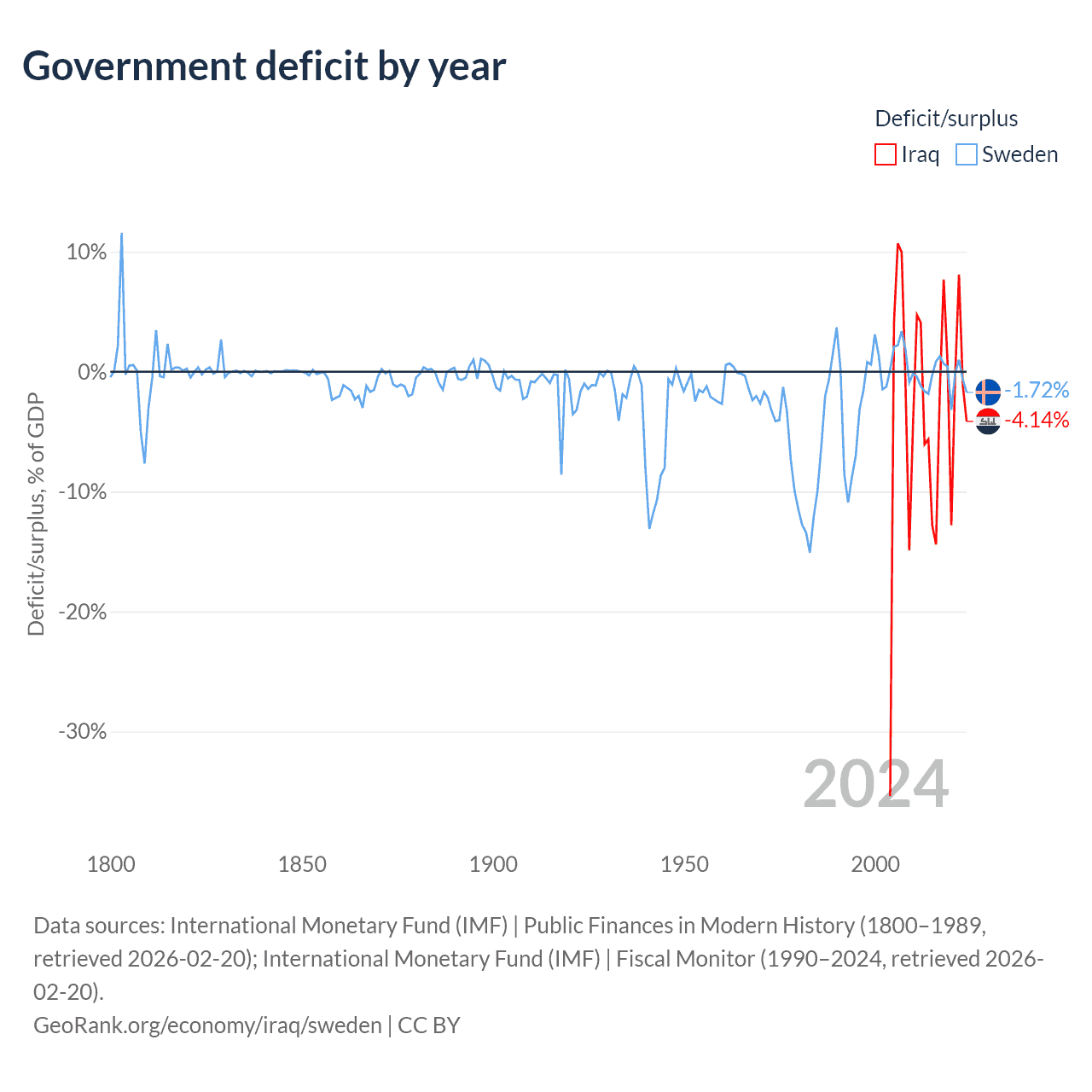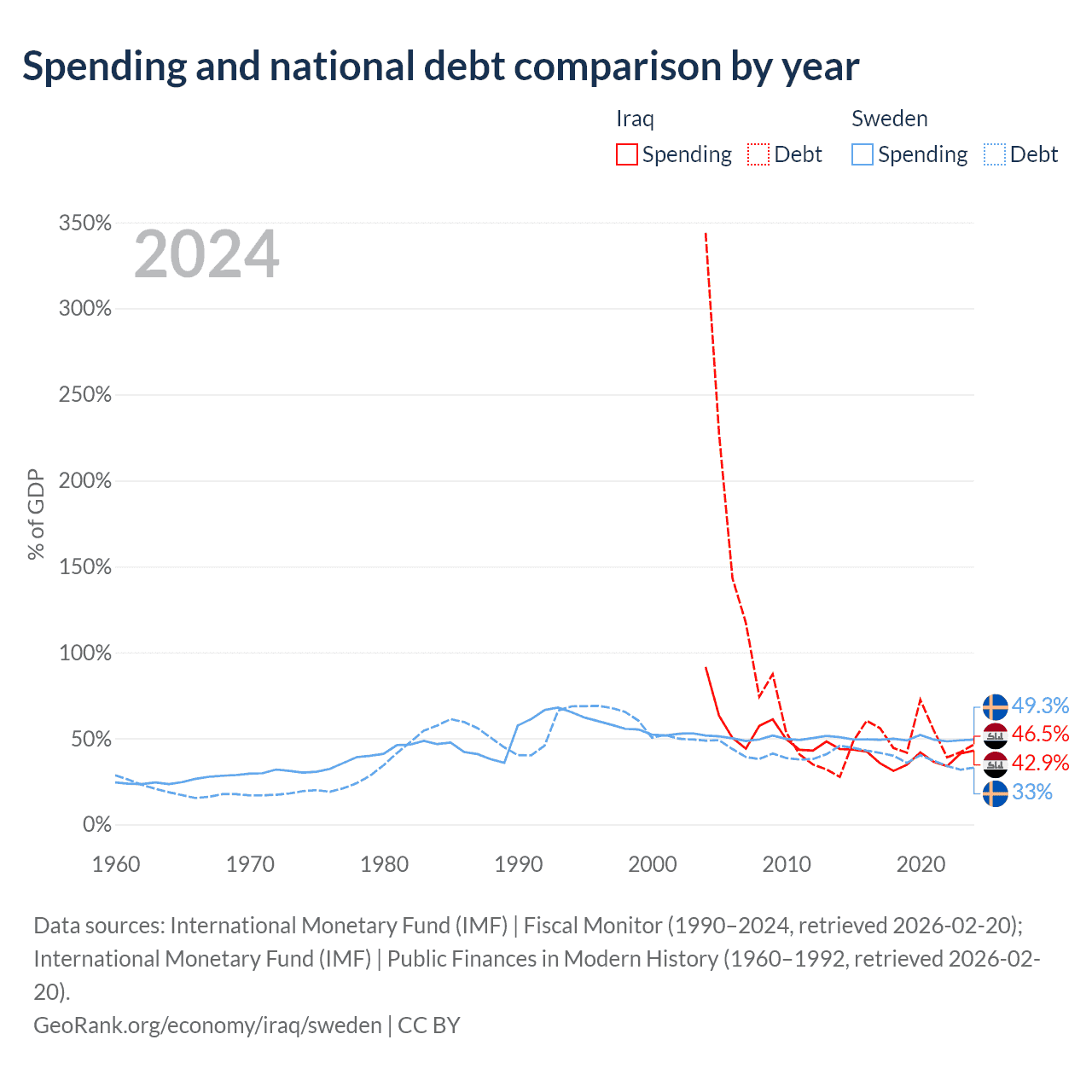 Iraq has $130B in government debt (46.5% of GDP), compared to $199B (33% of GDP) in Sweden.