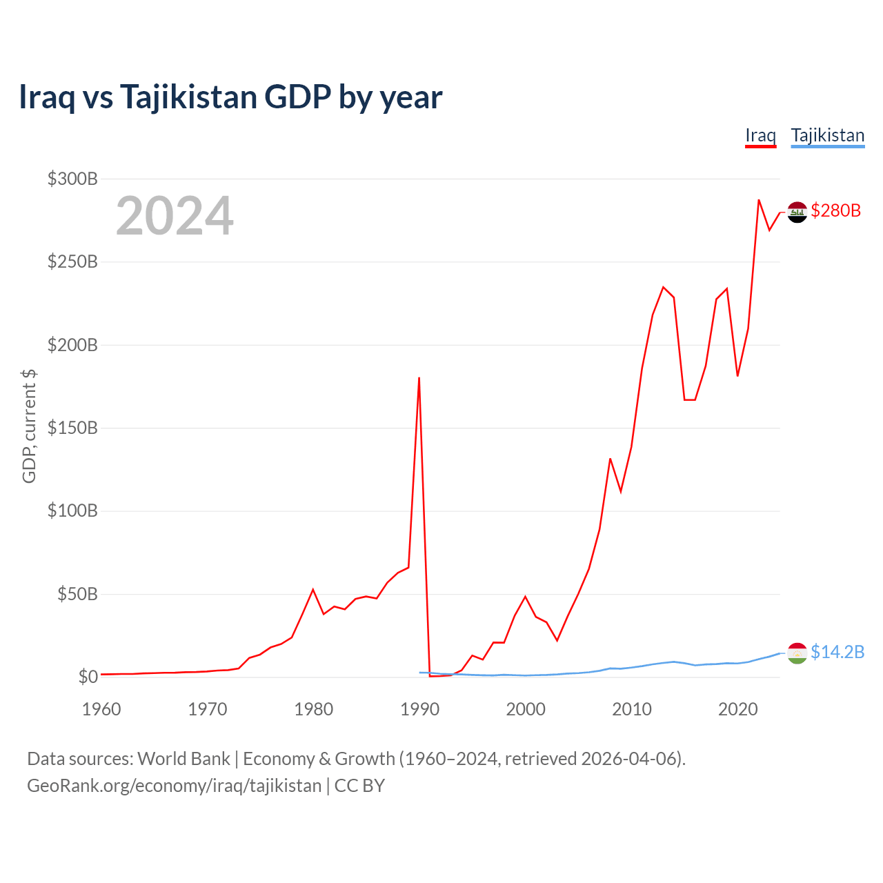 Iraq vs Tajikistan GDP by year
