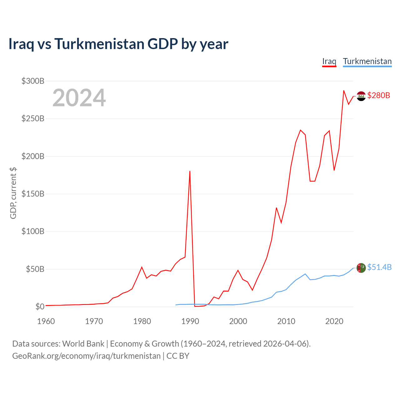 Iraq vs Turkmenistan GDP by year