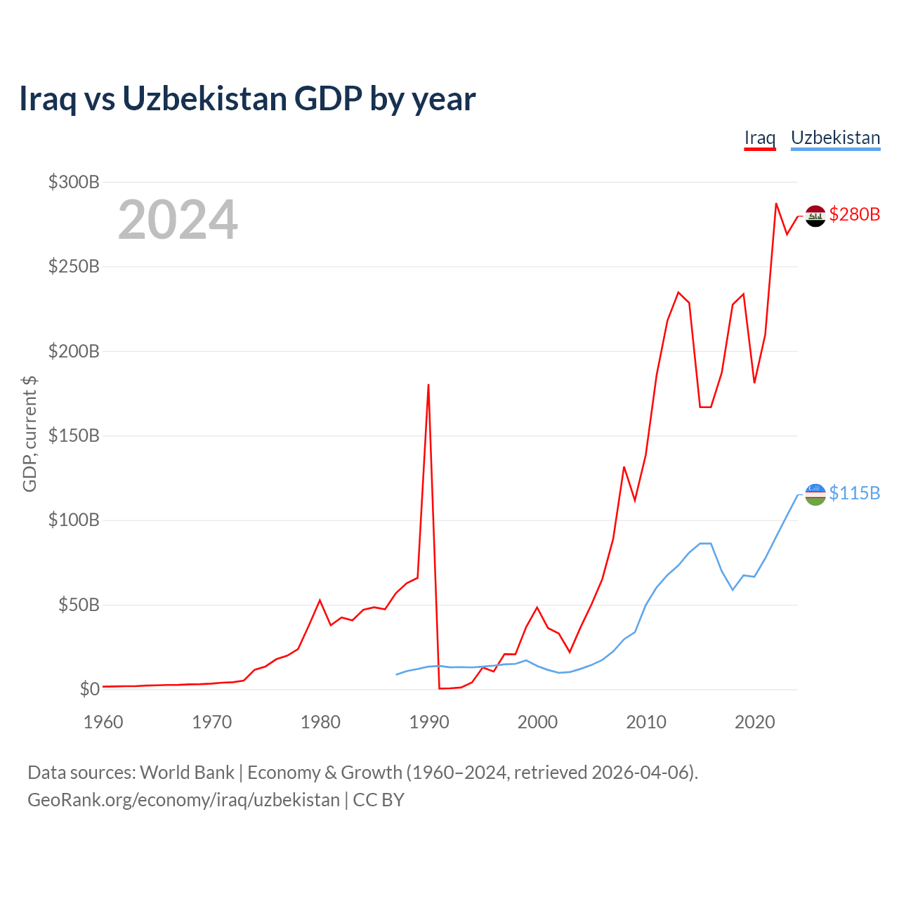 Iraq vs Uzbekistan GDP by year