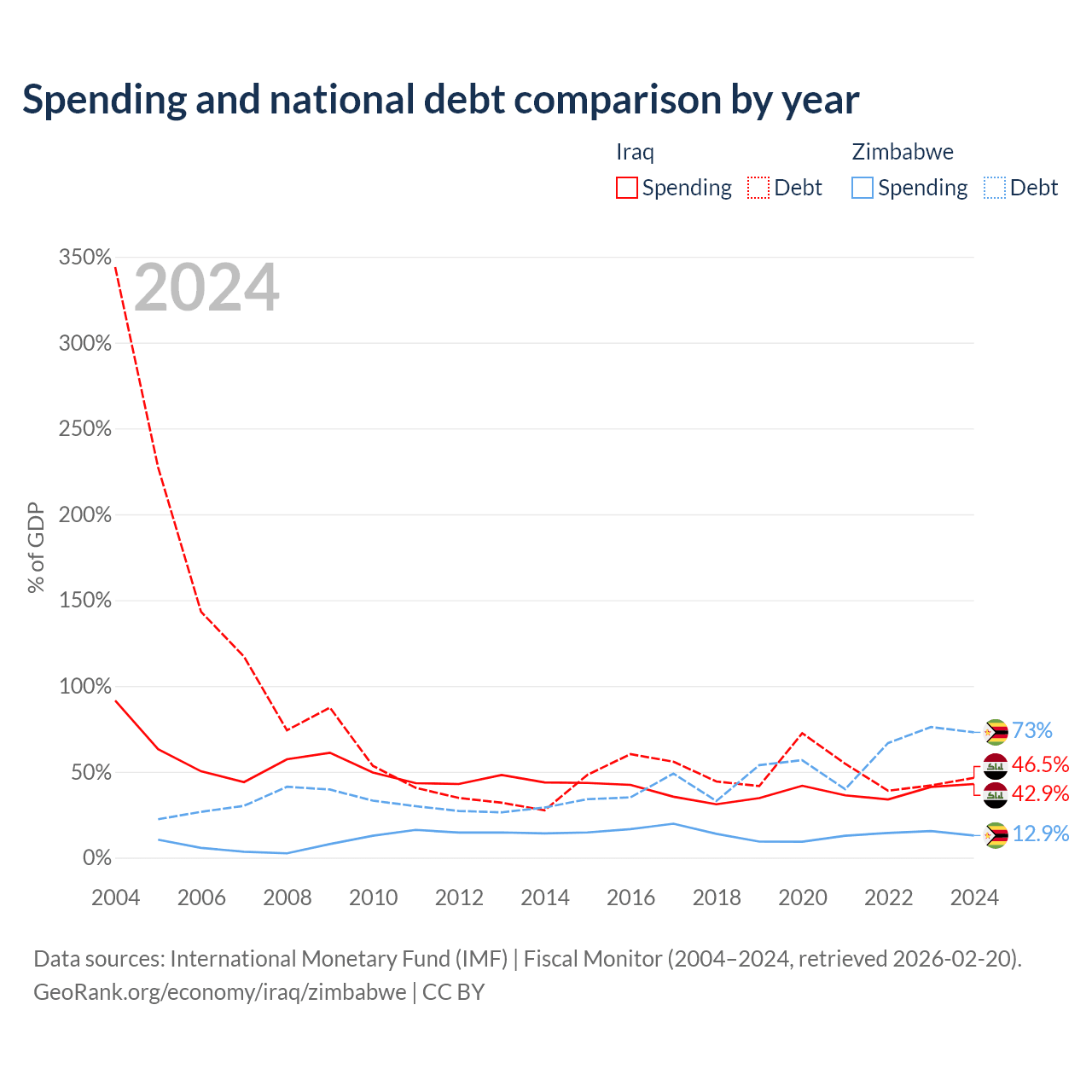 Iraq has $130B in government debt (46.5% of GDP), compared to $30.3B (73% of GDP) in Zimbabwe.
