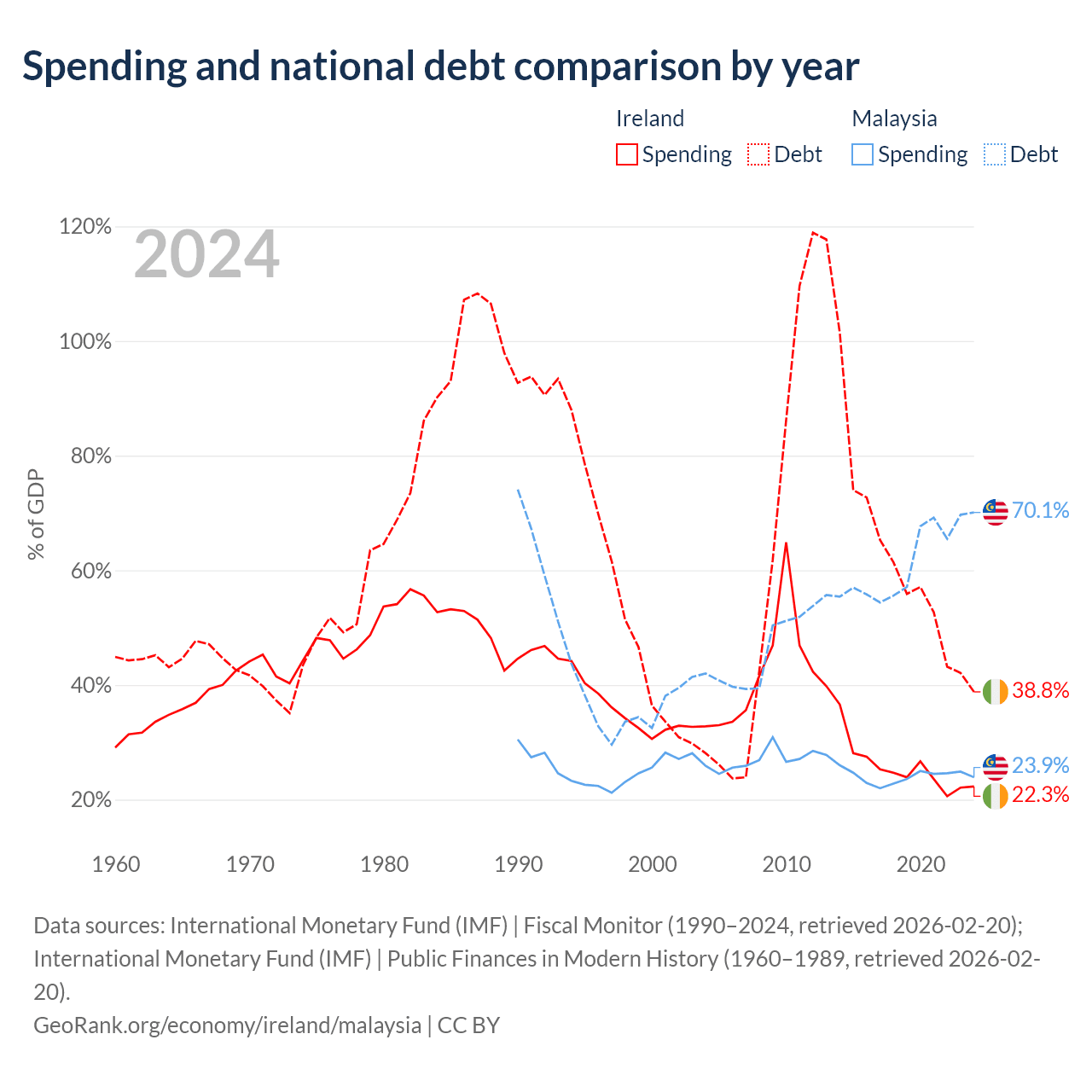 Ireland has $236B in government debt (38.8% of GDP), compared to $296B (70.1% of GDP) in Malaysia.