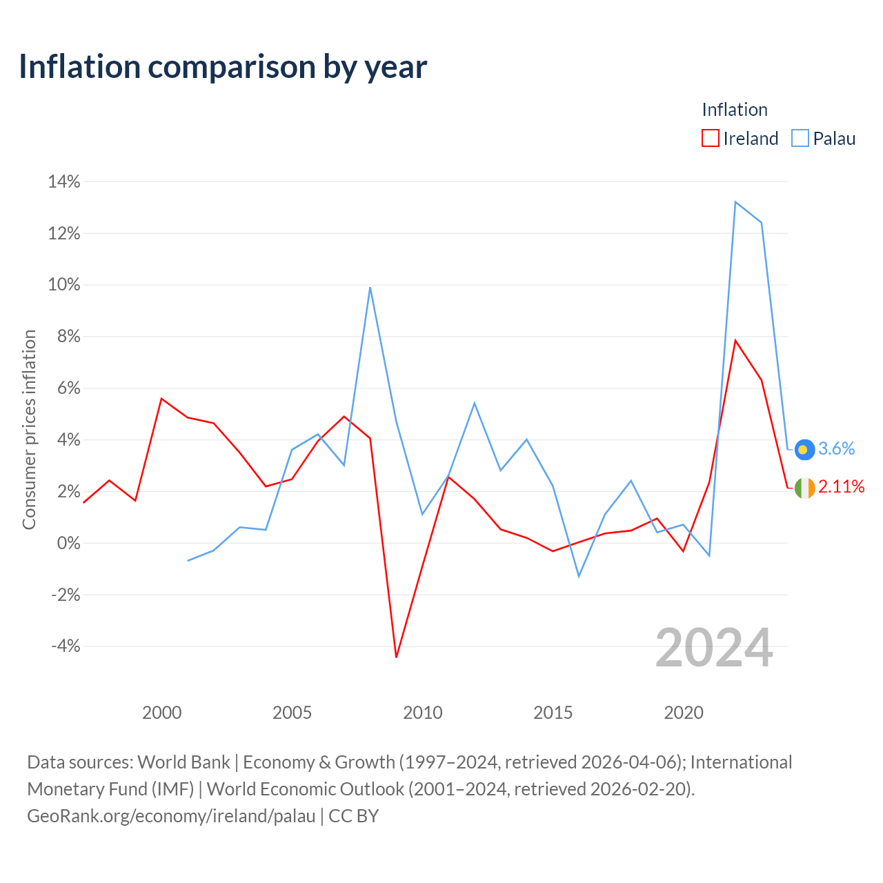 Ireland vs Palau GDP by year