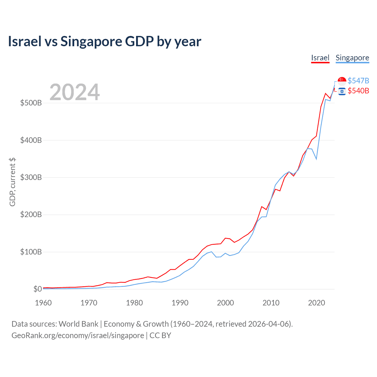 Israel vs Singapore GDP by year