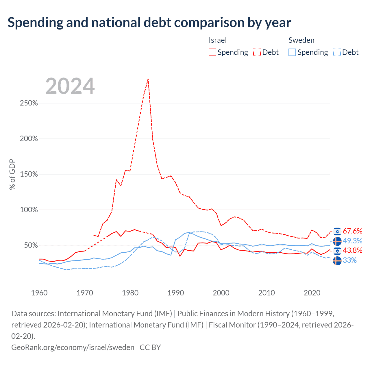 Israel has $366B in government debt (67.6% of GDP), compared to $199B (33% of GDP) in Sweden.