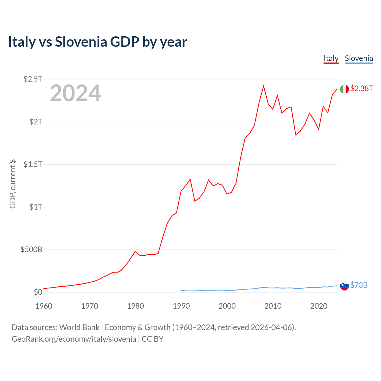 Italy vs Slovenia GDP by year