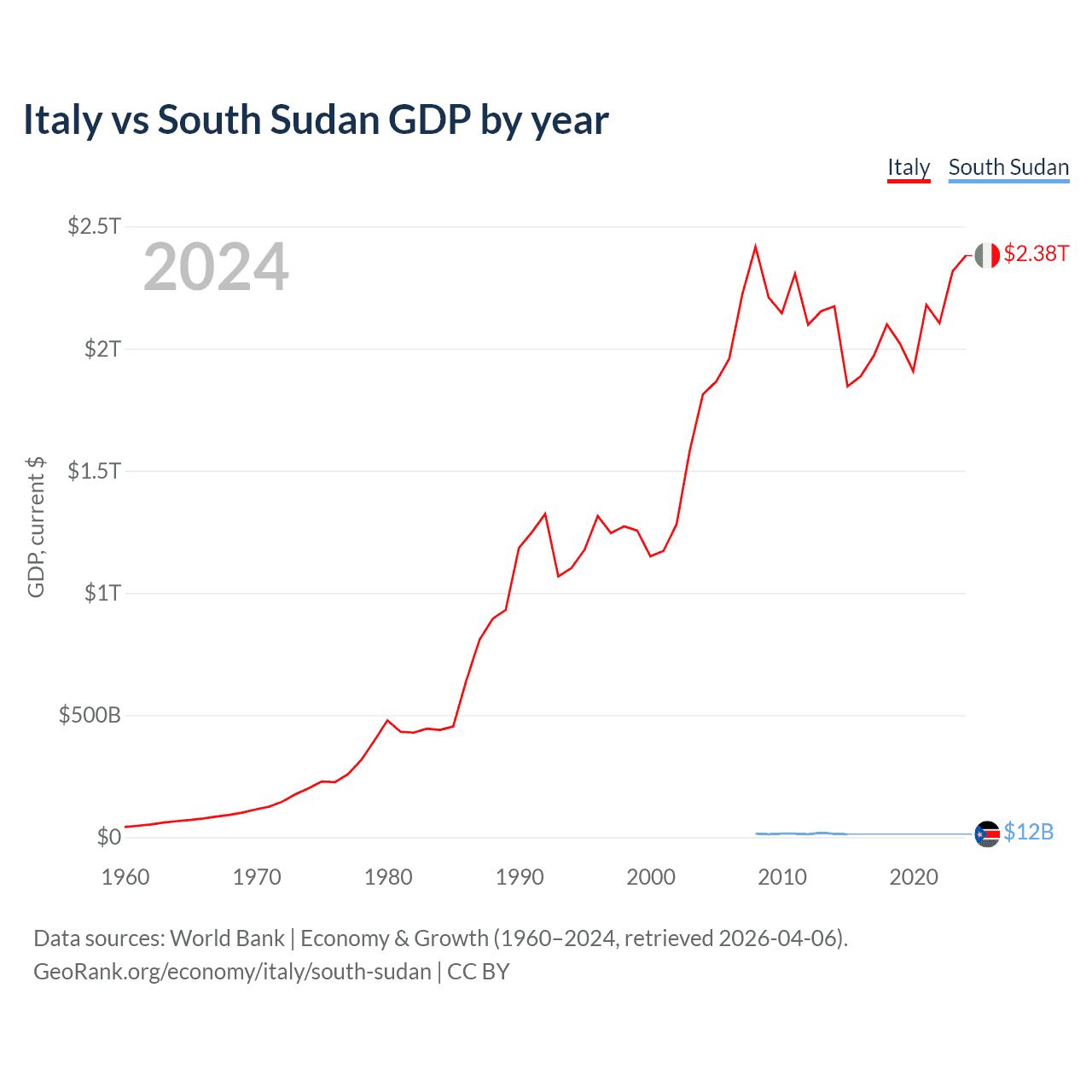 Italy vs South Sudan GDP by year