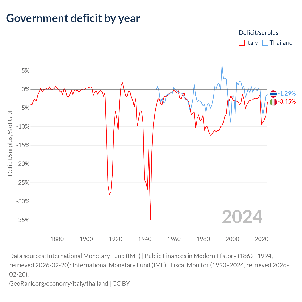 - International Monetary Fund (IMF) | Public Finances in Modern History (1862–1995, retrieved 2026-02-20)
