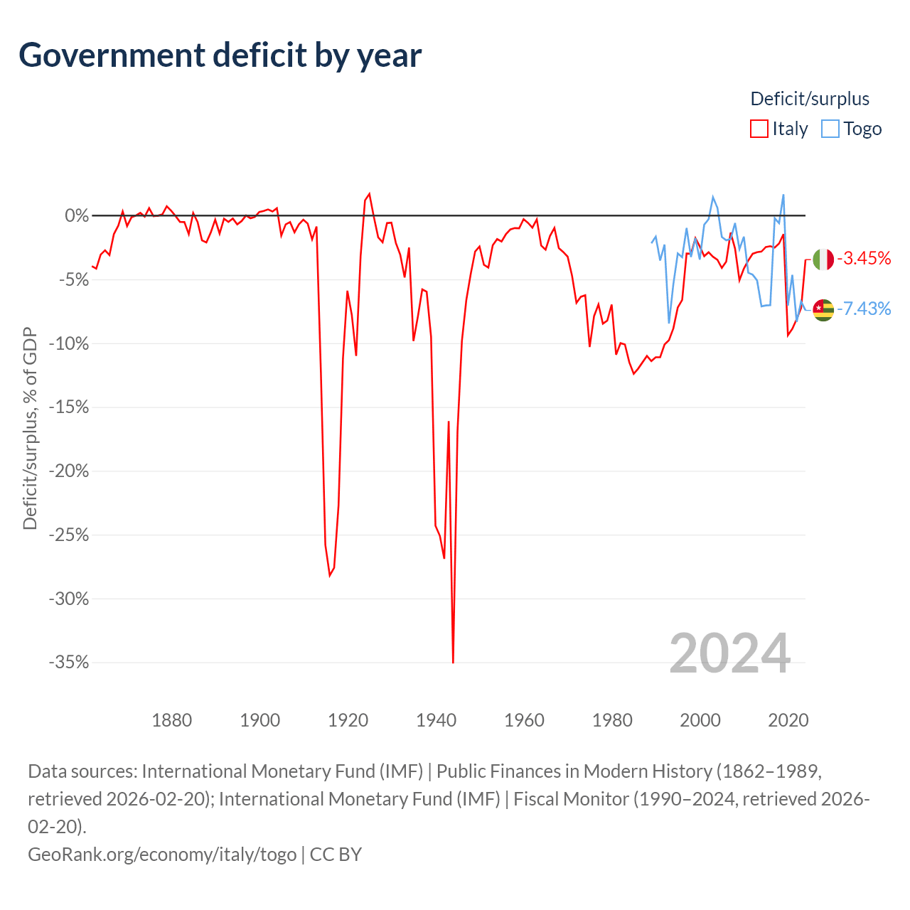 - International Monetary Fund (IMF) | Public Finances in Modern History (1862–2004, retrieved 2026-02-20)