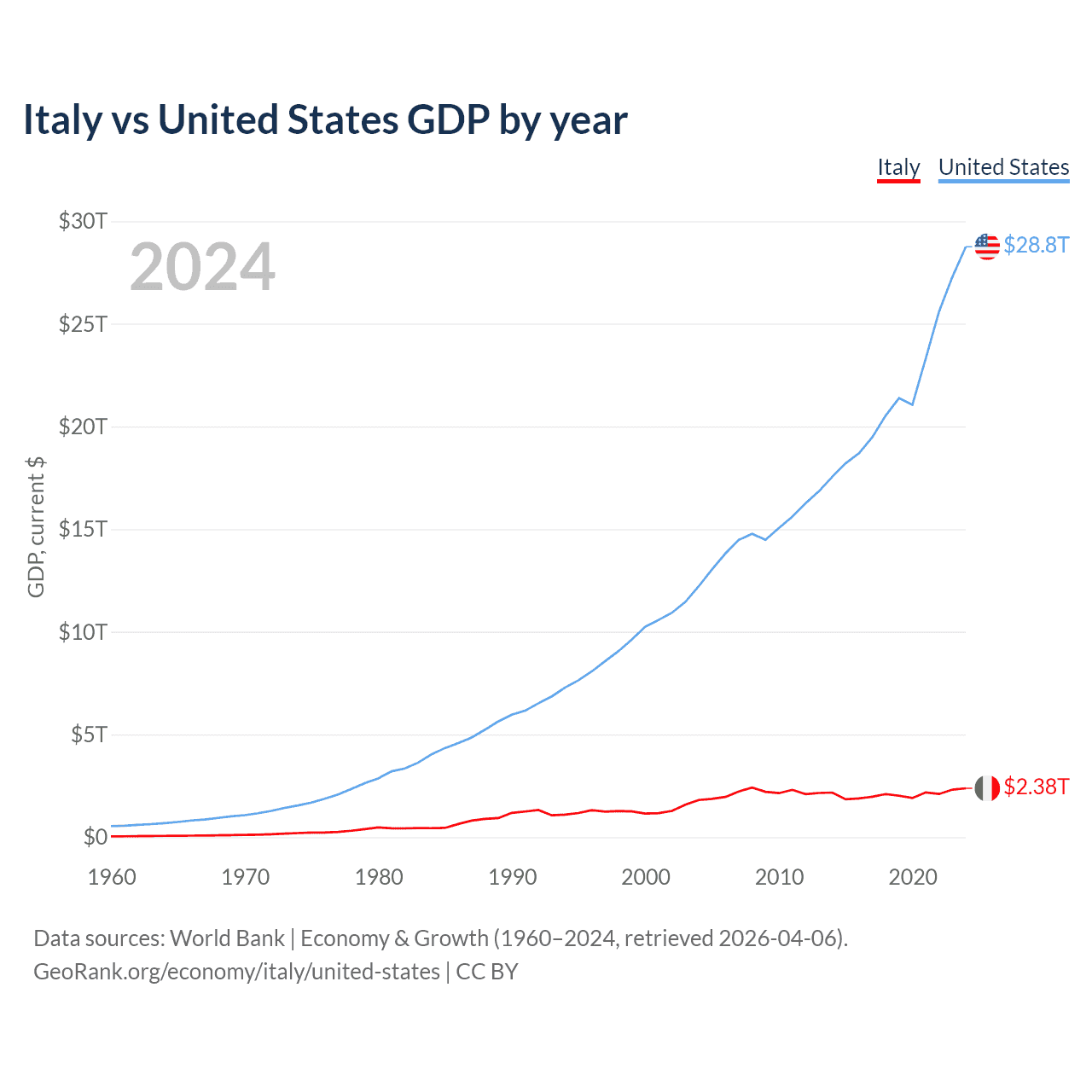 Italy vs United States GDP by year