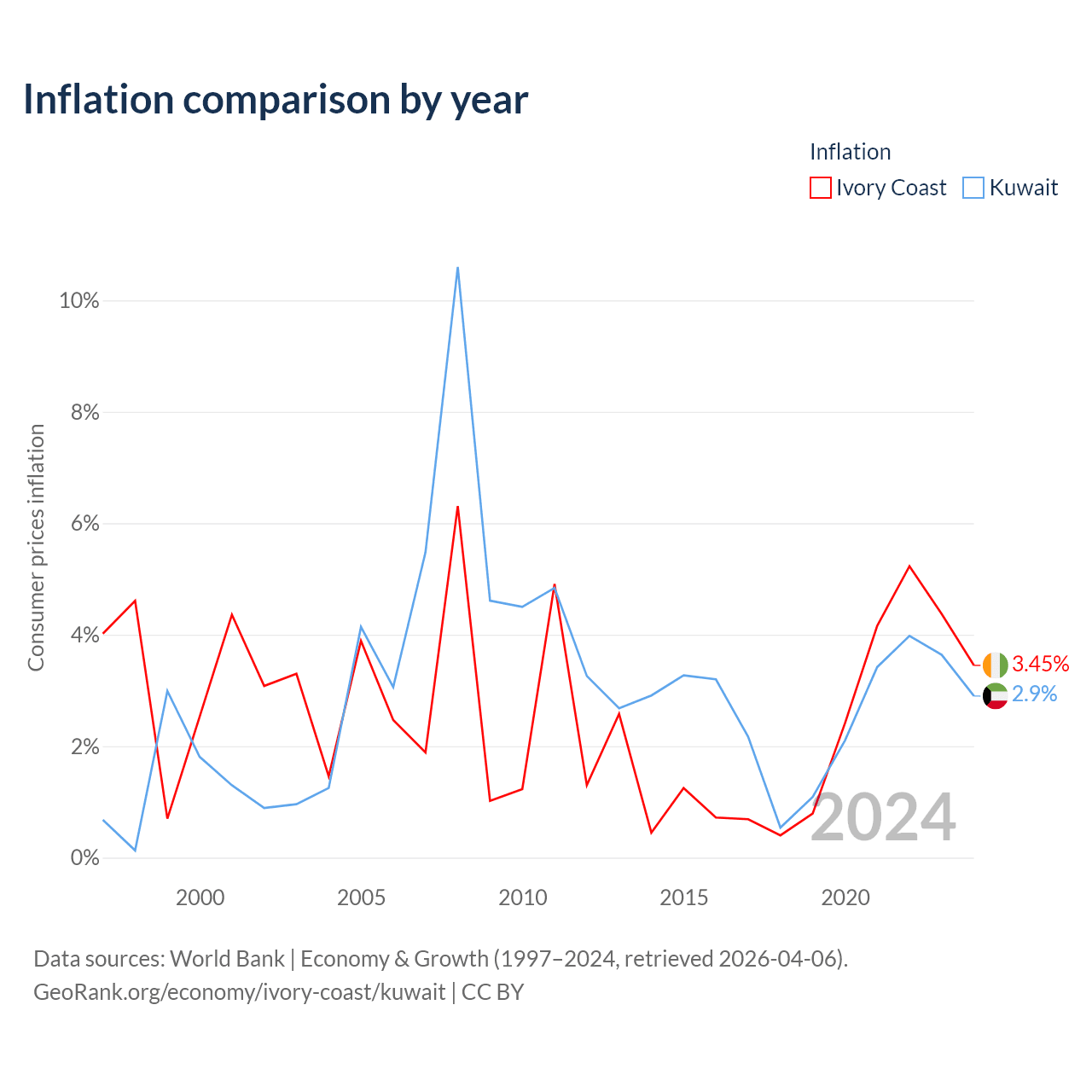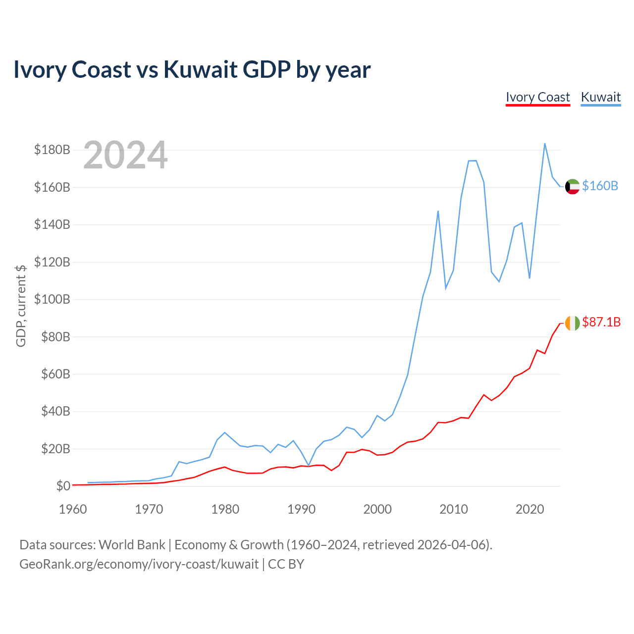 Ivory Coast vs Kuwait GDP by year