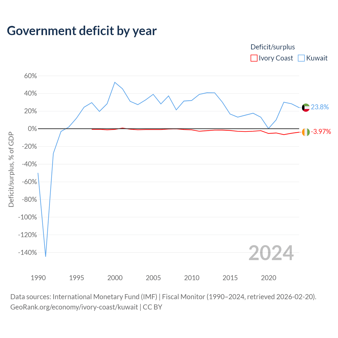 - International Monetary Fund (IMF) | Fiscal Monitor (1990–2024, retrieved 2026-02-20)