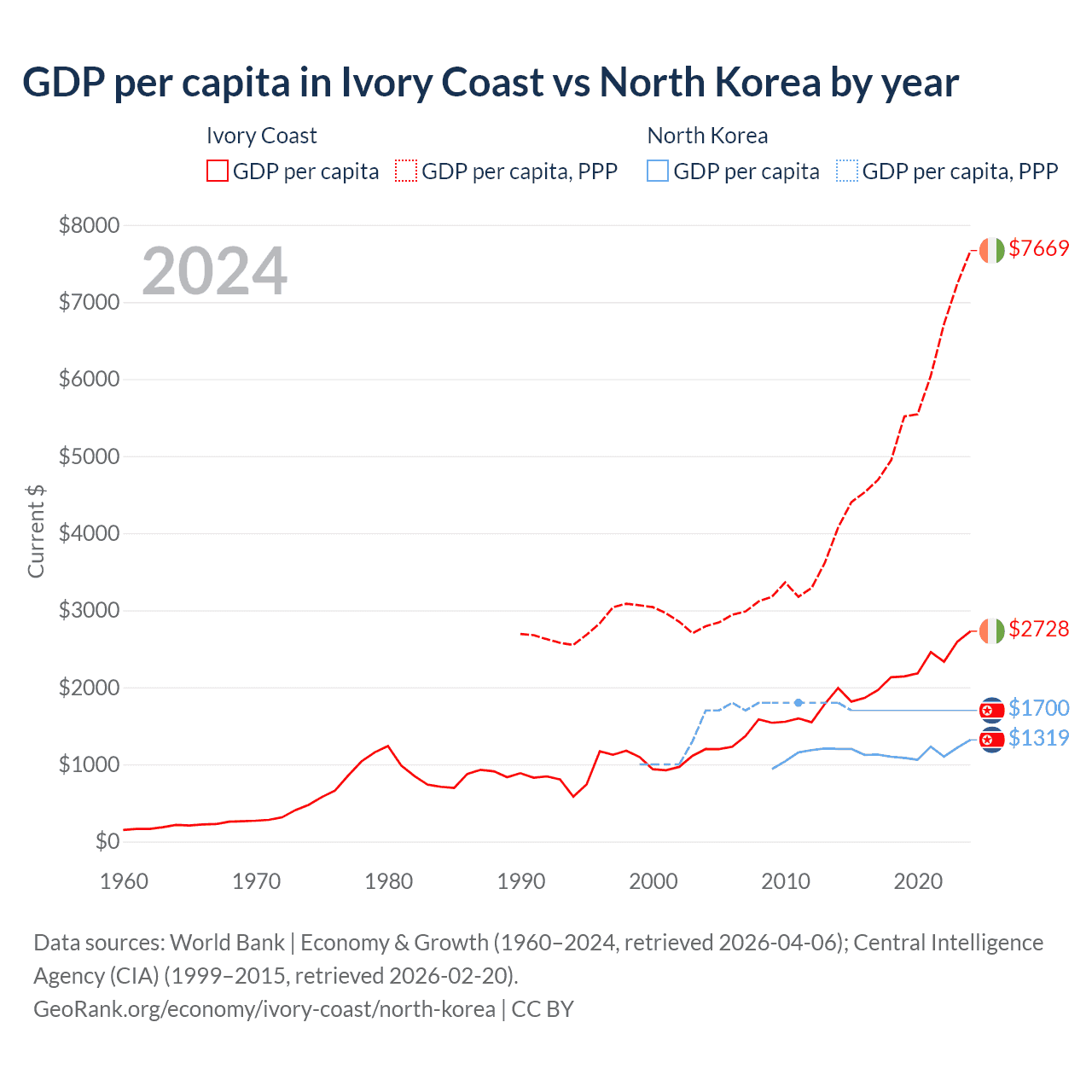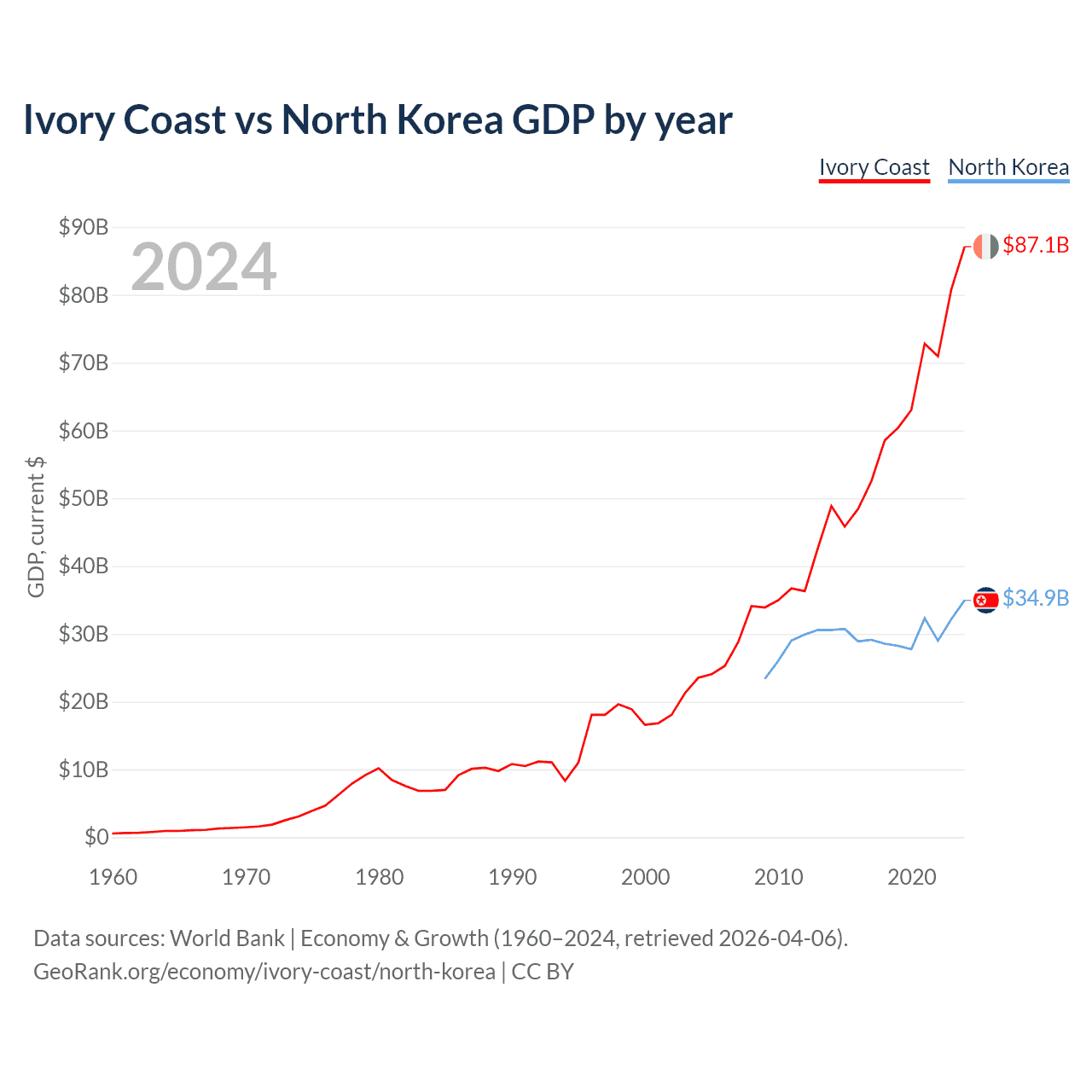 Ivory Coast vs North Korea GDP by year