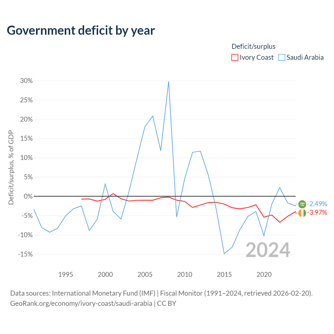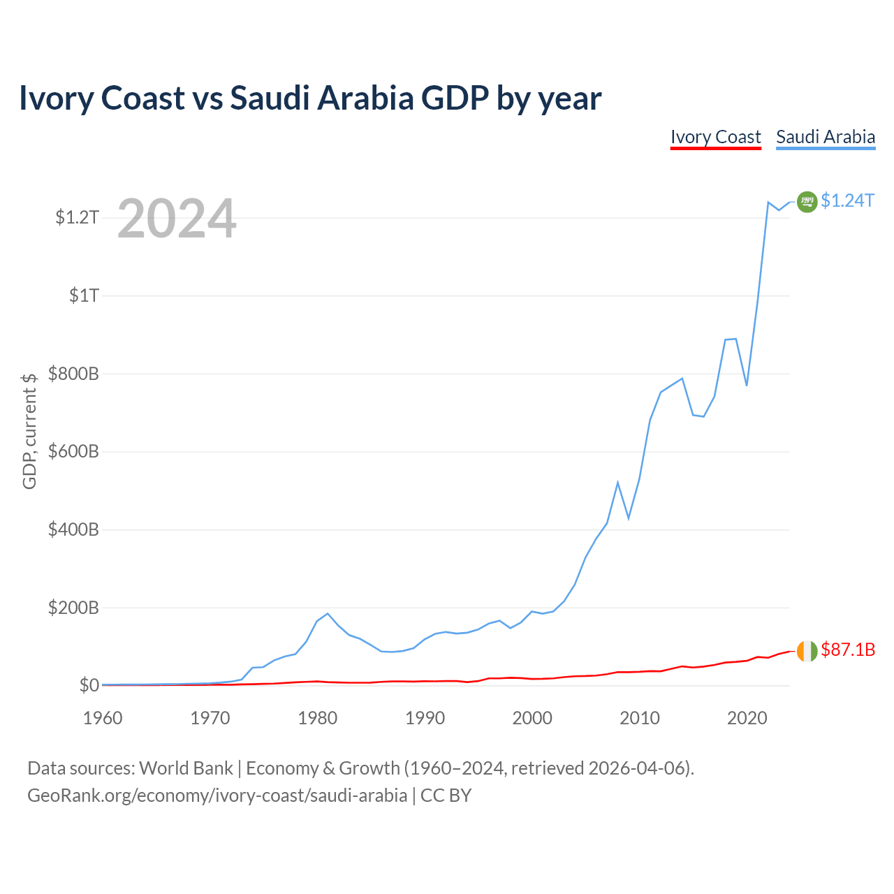 Ivory Coast vs Saudi Arabia GDP by year