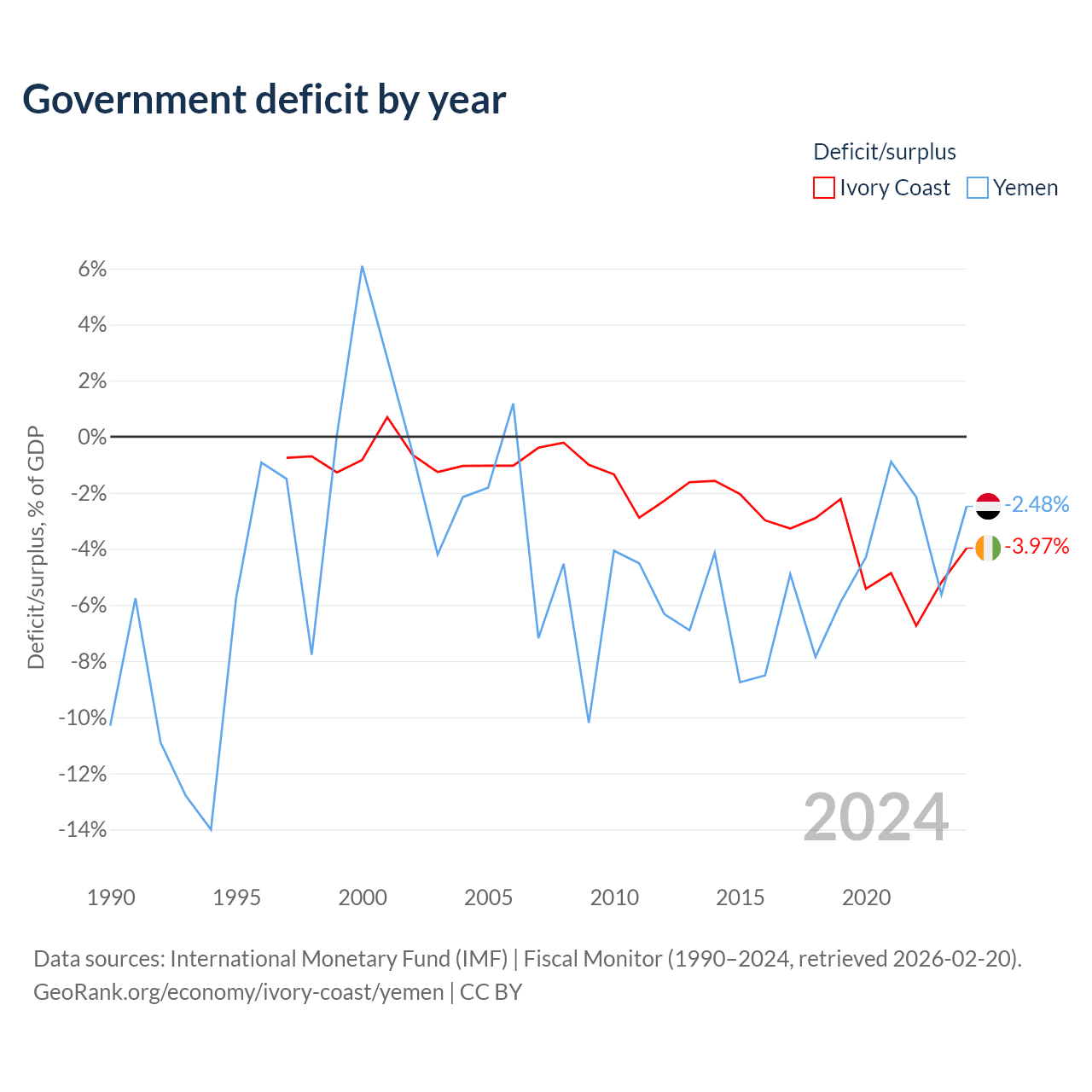 - International Monetary Fund (IMF) | Fiscal Monitor (1990–2024, retrieved 2026-02-20)