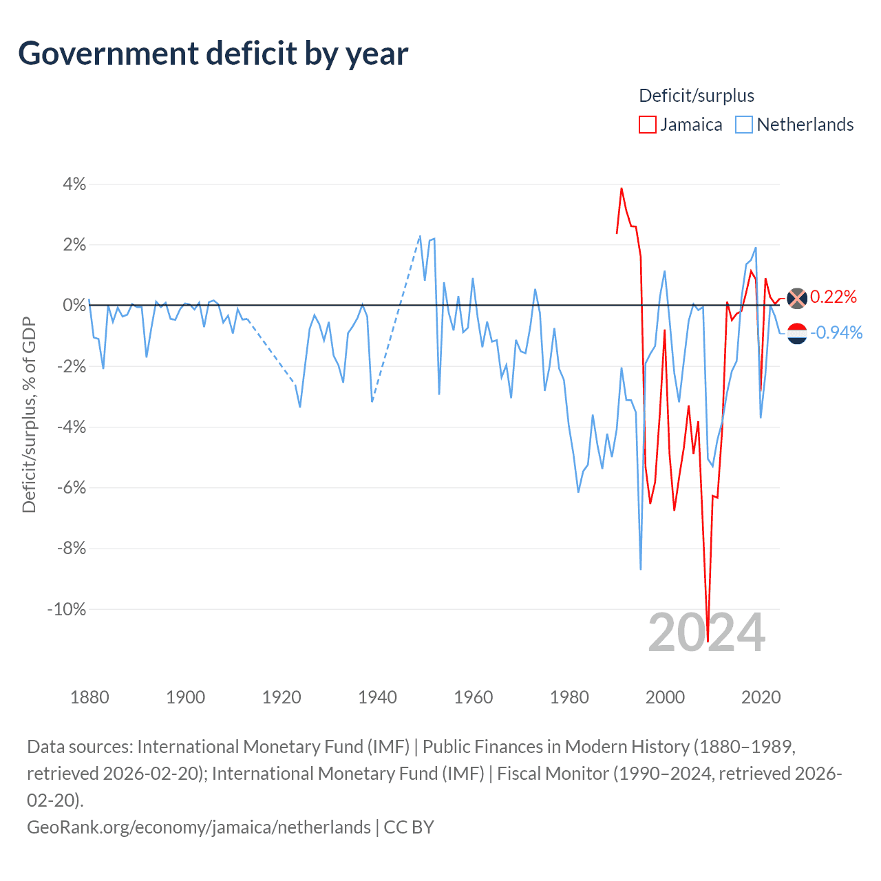 - International Monetary Fund (IMF) | Public Finances in Modern History (1880–1998, retrieved 2026-02-20)