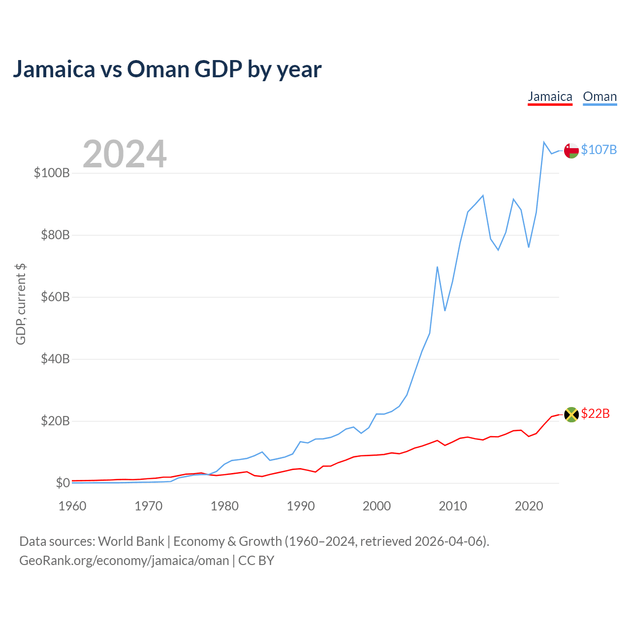 Jamaica vs Oman GDP by year