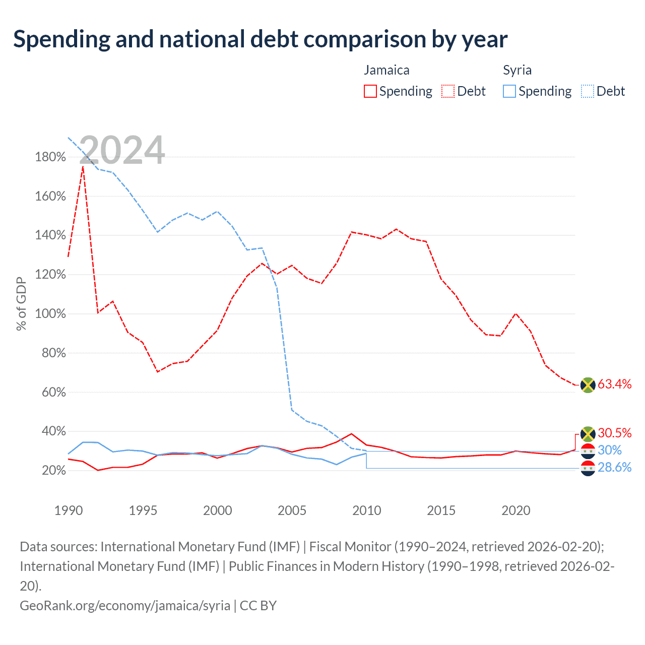 Jamaica has $14B in government debt (63.4% of GDP), compared to $18.4B (30% of GDP) in Syria.