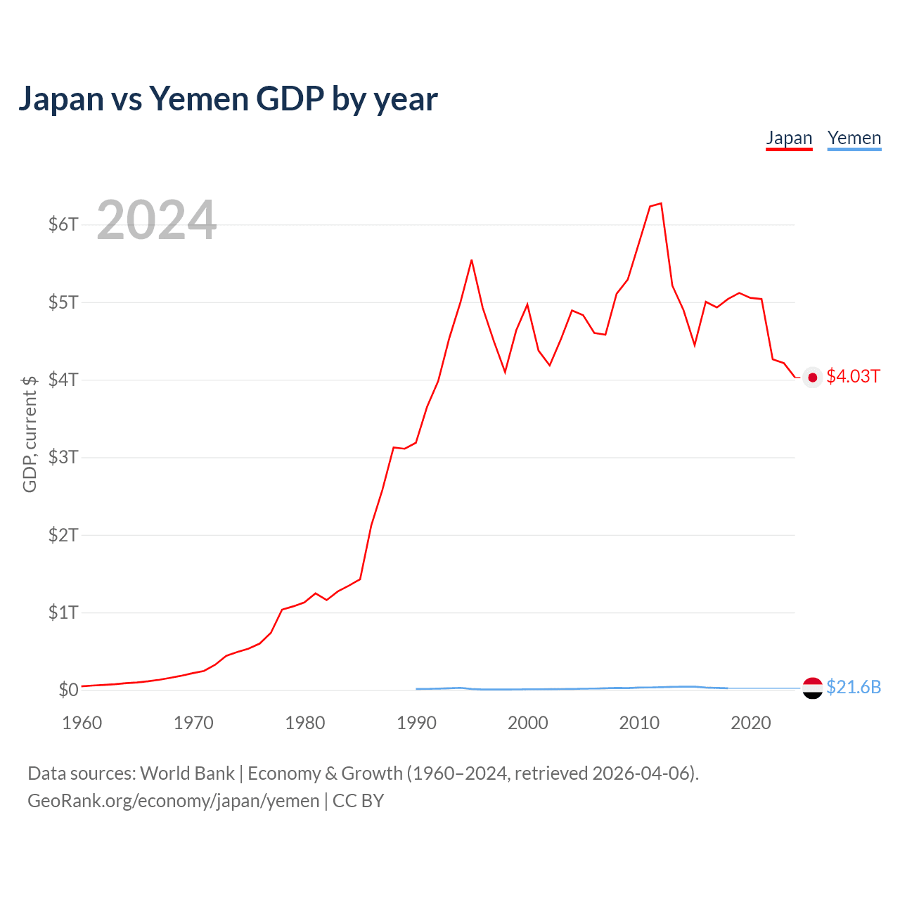 Japan vs Yemen GDP by year