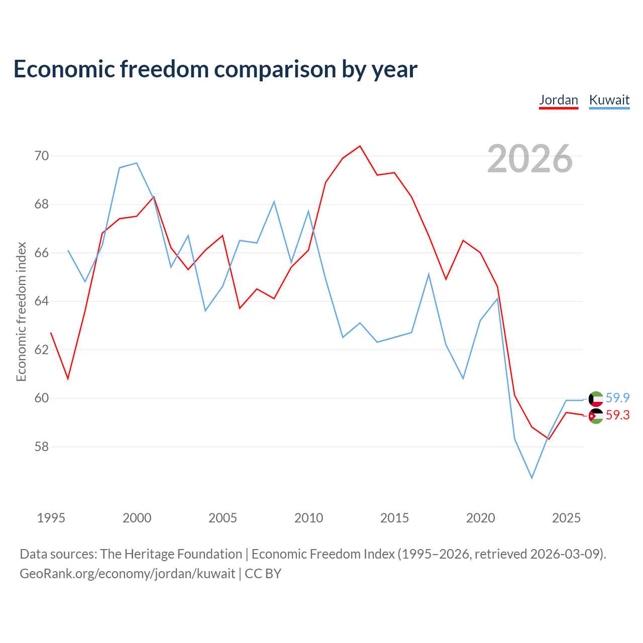 Data sources: The Heritage Foundation | Economic Freedom Index (1995–2026, retrieved 2026-03-09).