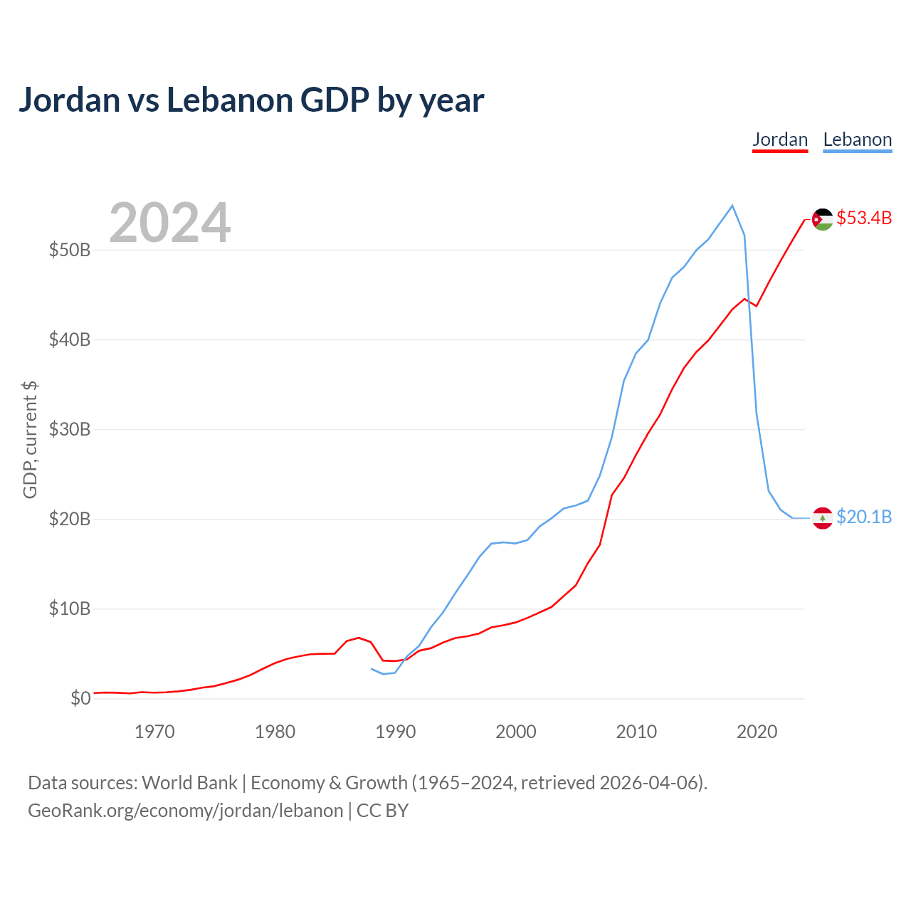 Jordan vs Lebanon GDP by year