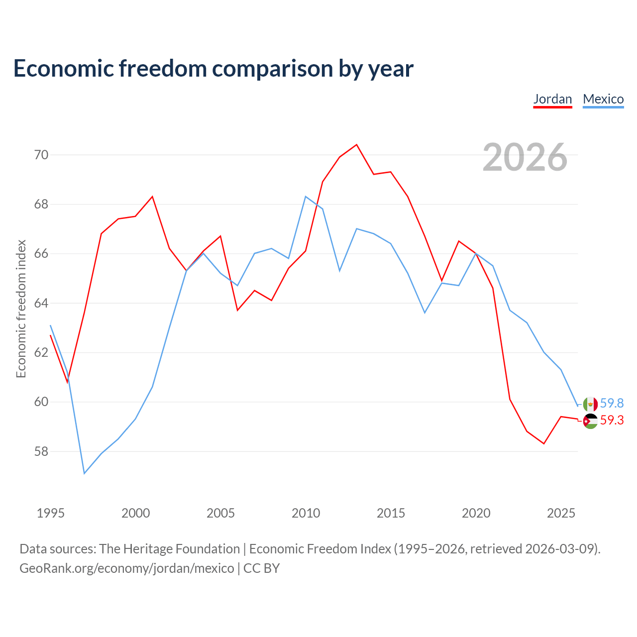 Data sources: The Heritage Foundation | Economic Freedom Index (1995–2026, retrieved 2026-03-09).