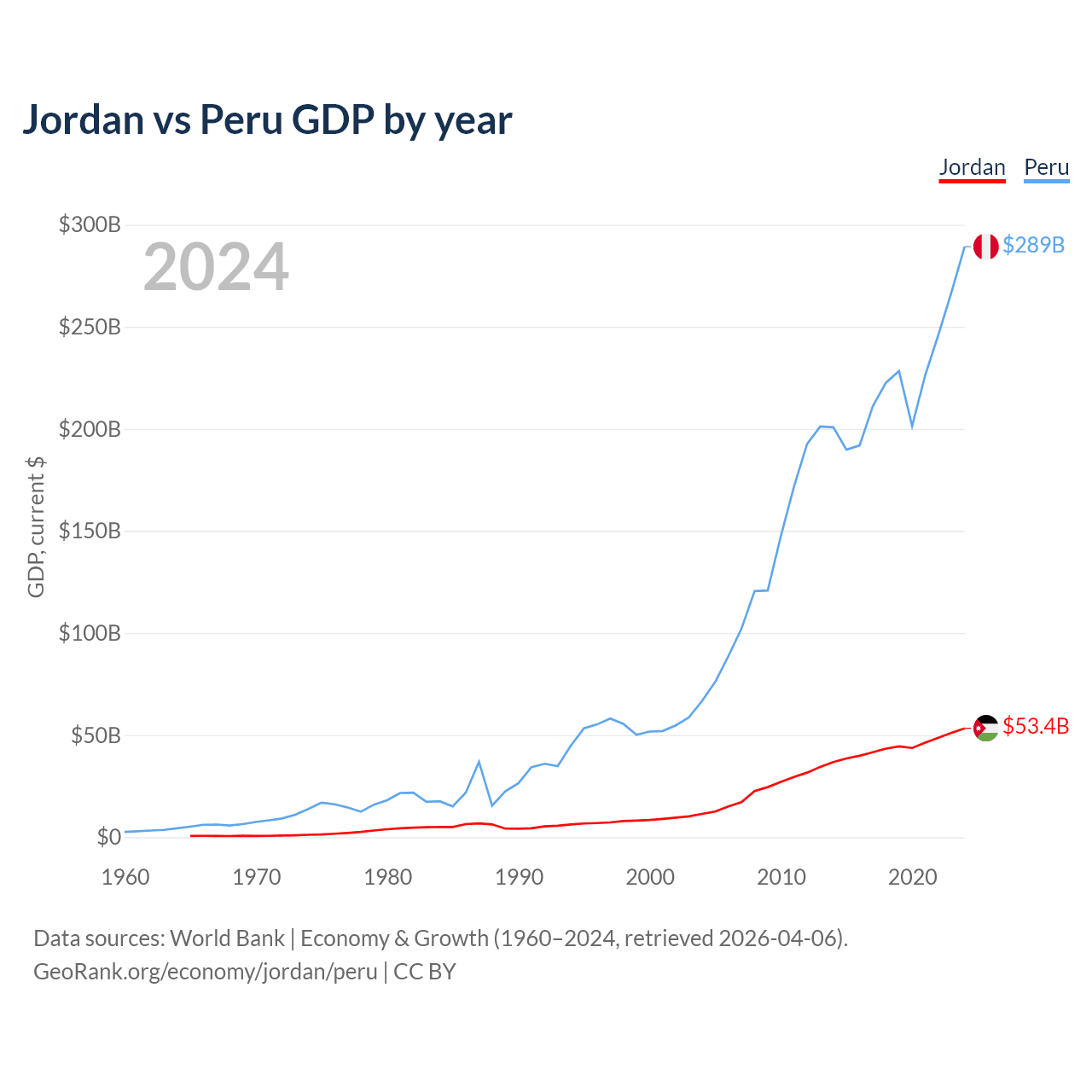 Jordan vs Peru GDP by year