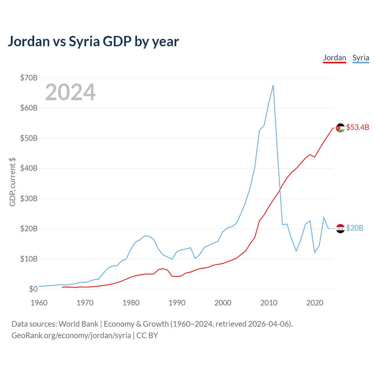 Jordan vs Syria GDP by year