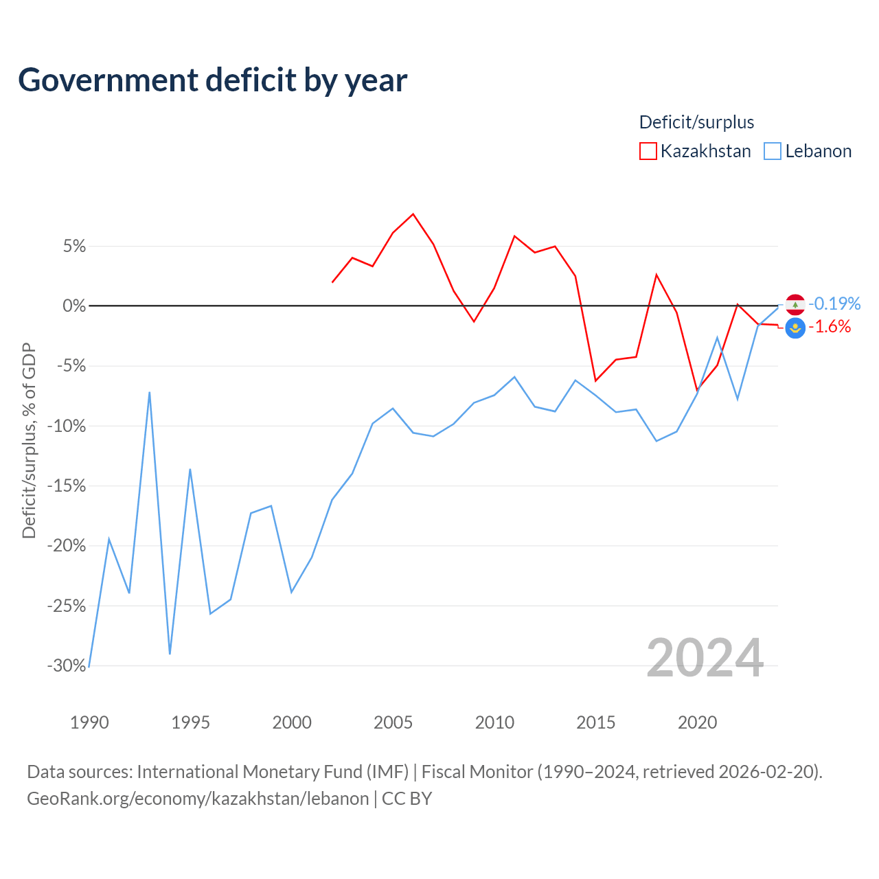 - International Monetary Fund (IMF) | Fiscal Monitor (1990–2024, retrieved 2026-02-20)