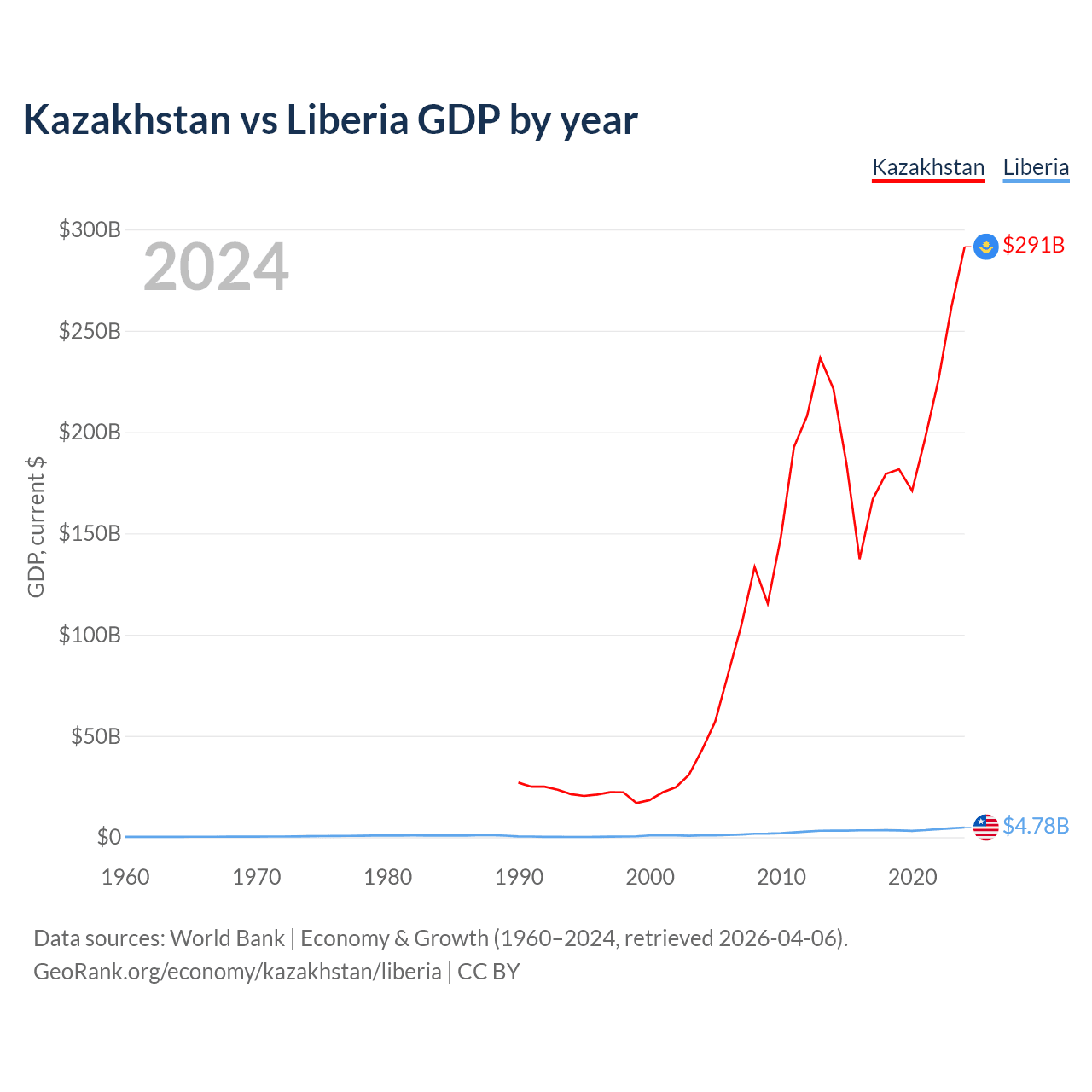 Kazakhstan vs Liberia GDP by year