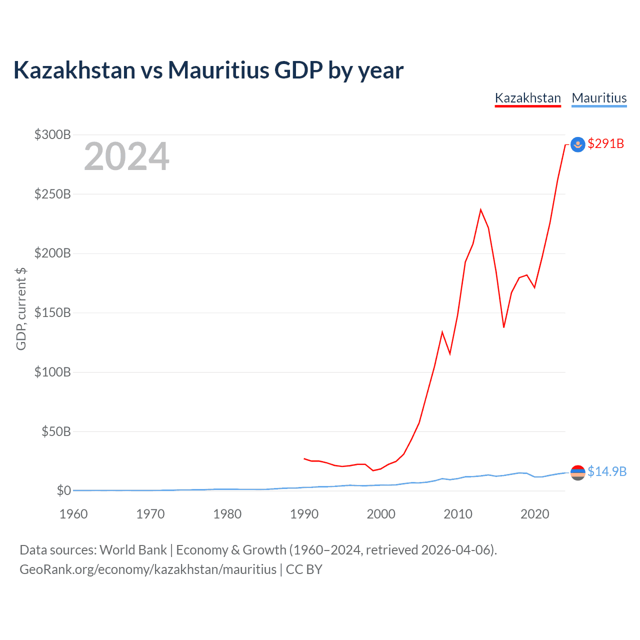 Kazakhstan vs Mauritius GDP by year