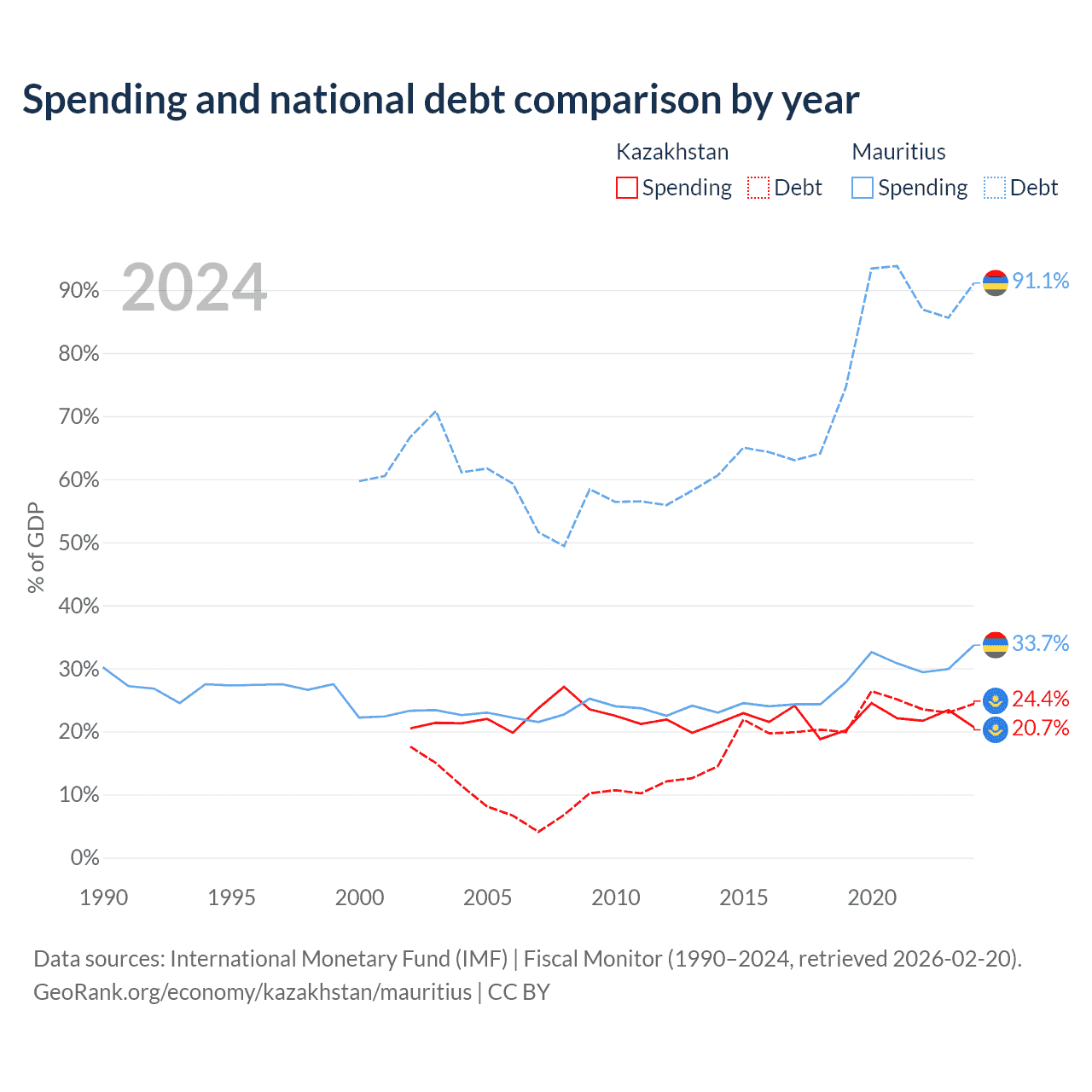 - International Monetary Fund (IMF) | Fiscal Monitor (1990–2024, retrieved 2026-02-20)