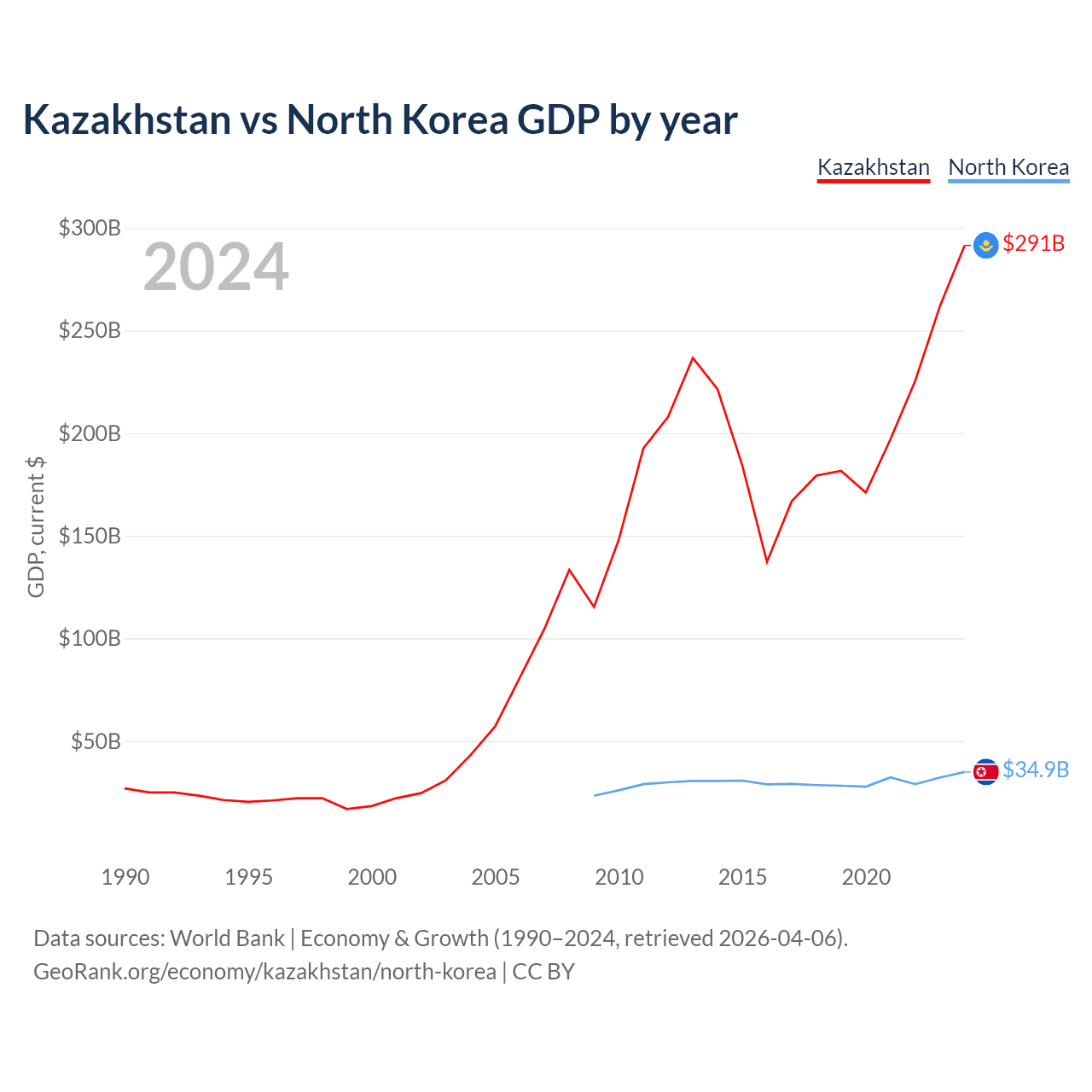 Kazakhstan vs North Korea GDP by year